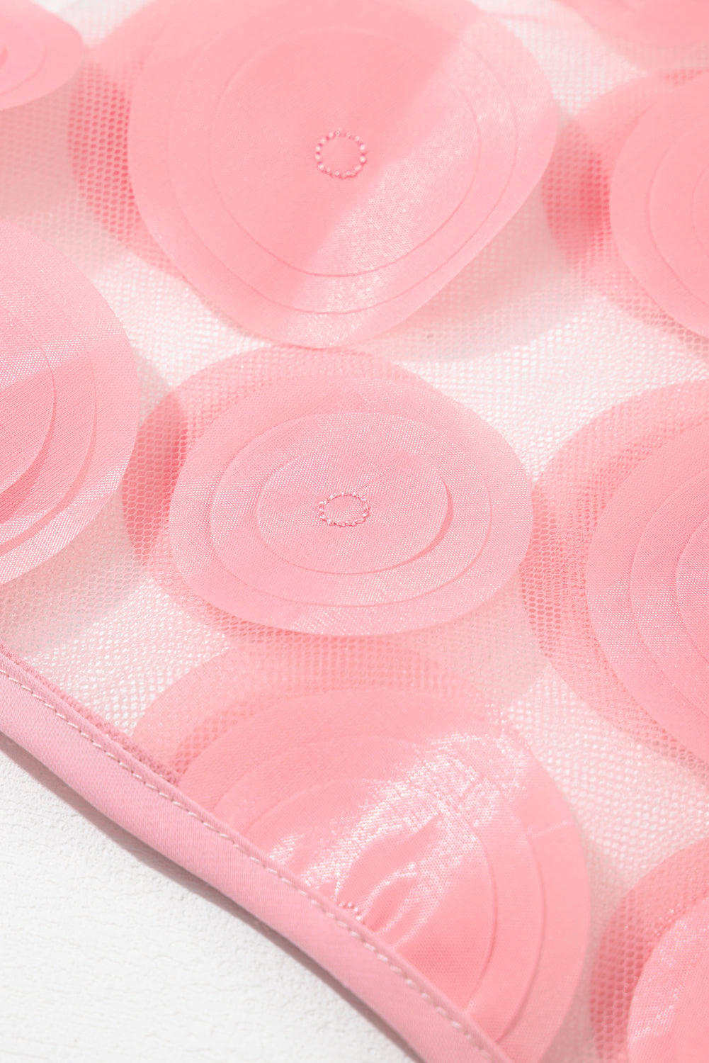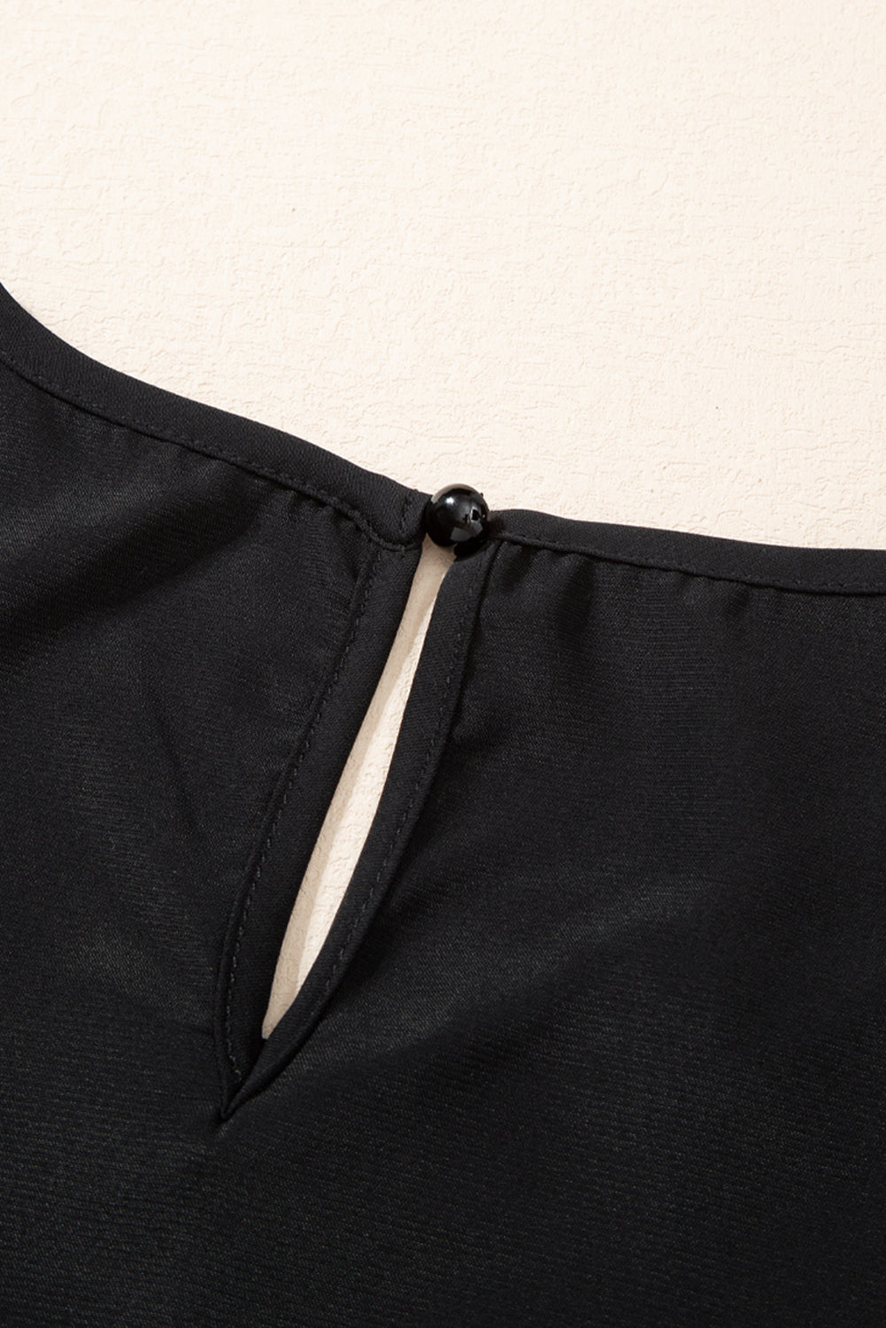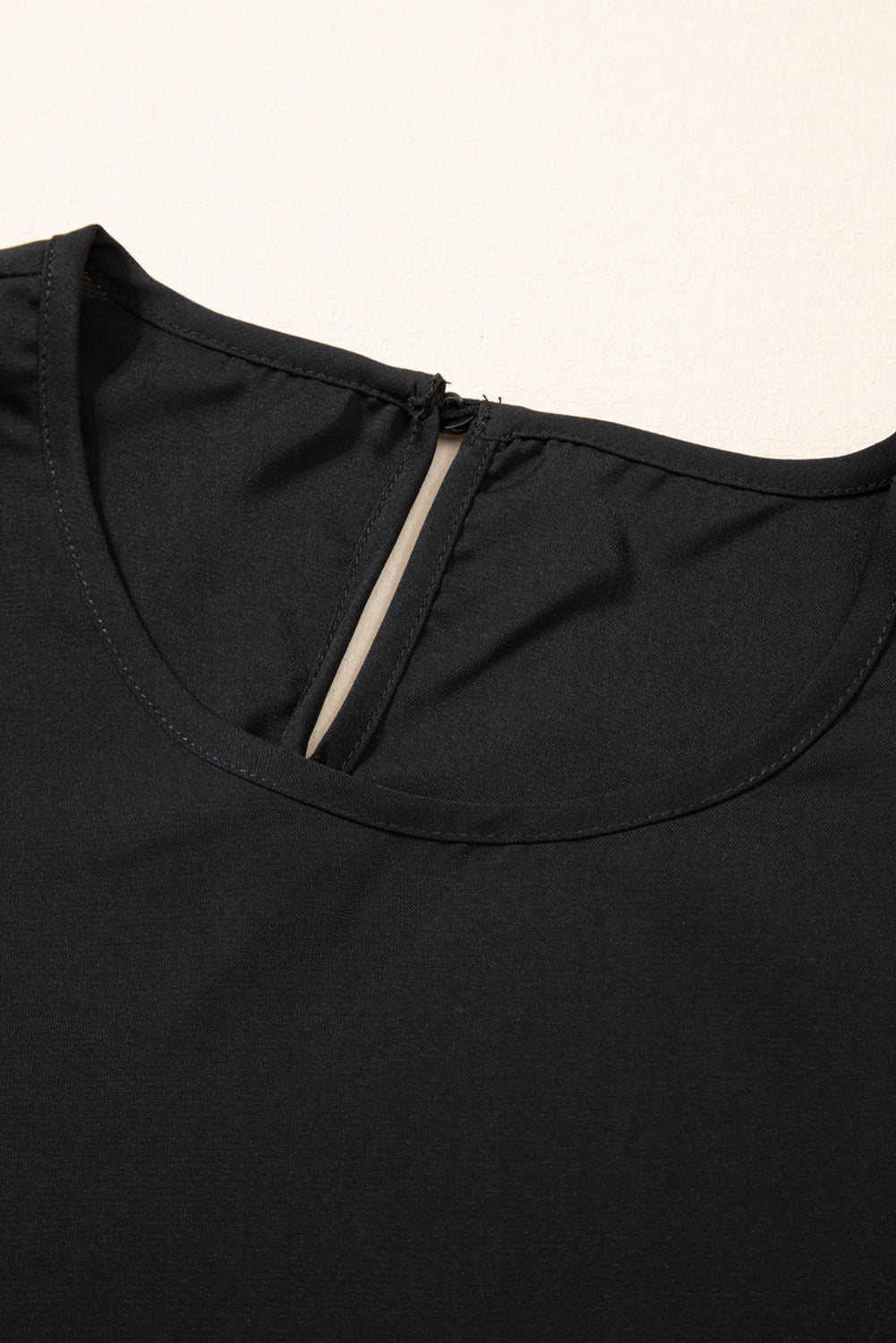 Black Contrast Applique Mesh Half Sleeve Blouse