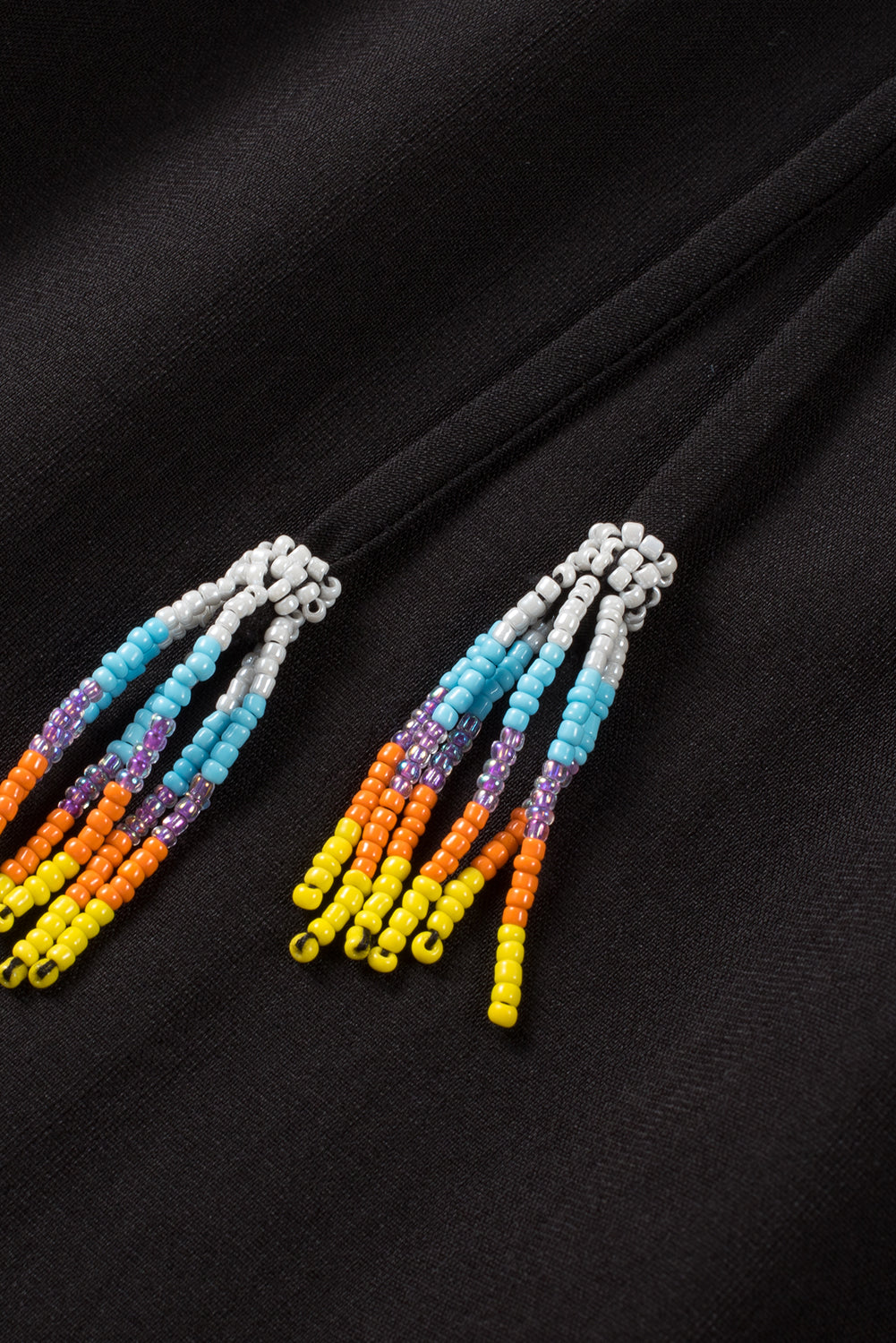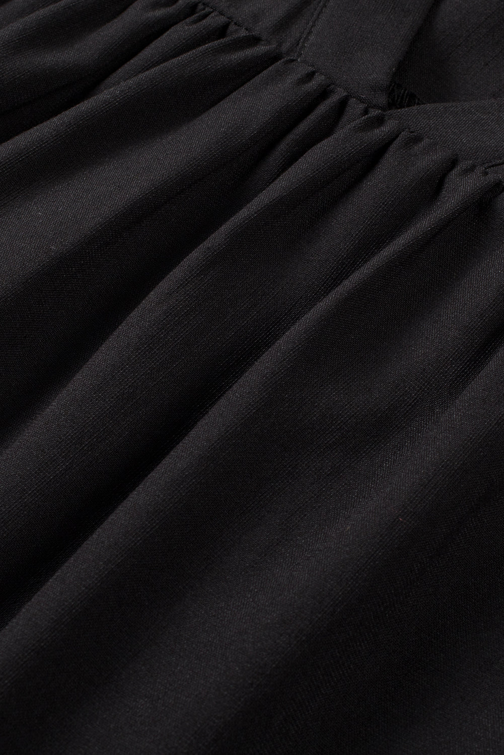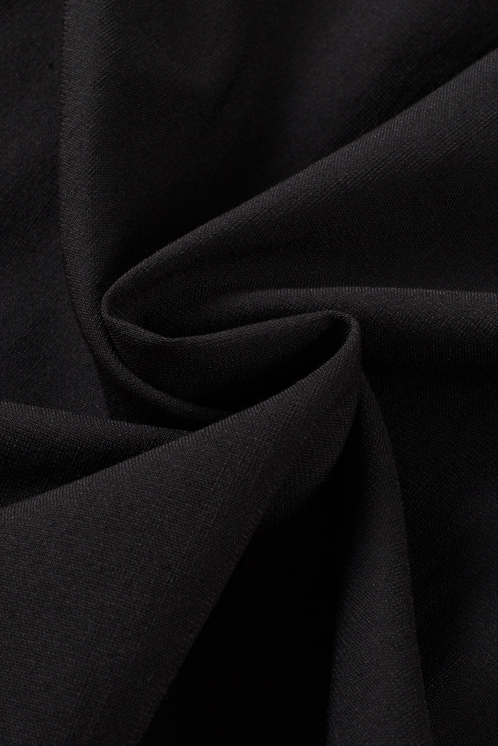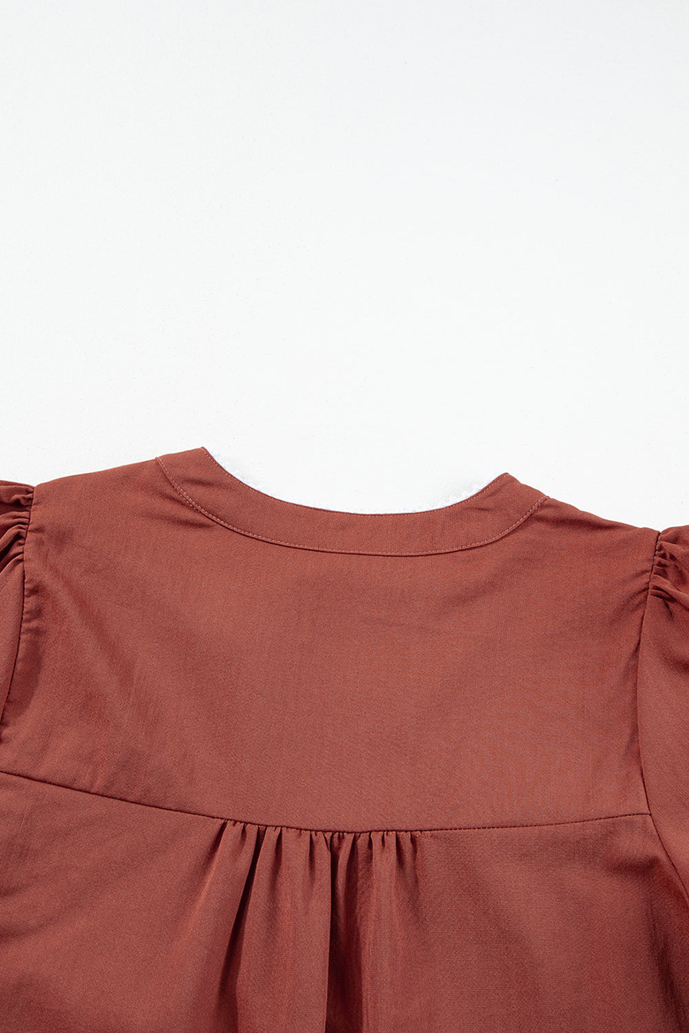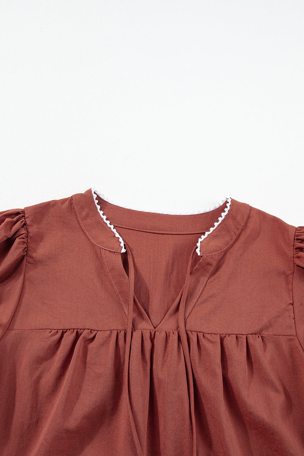 Black Floral Embroidered Puff Sleeve Split Neck Blouse