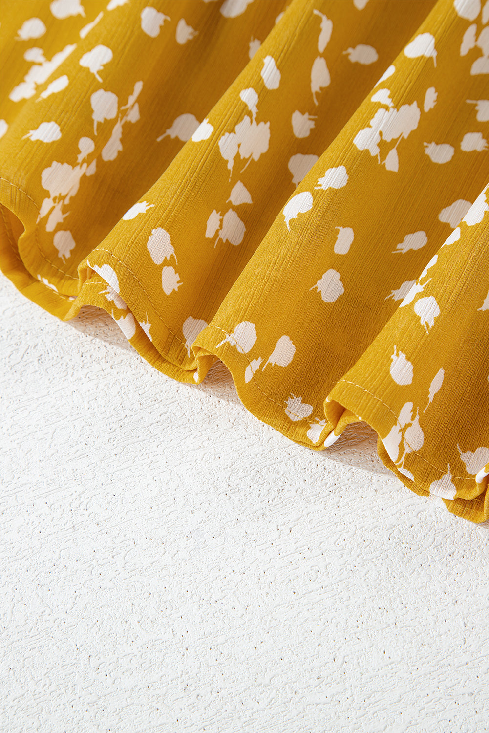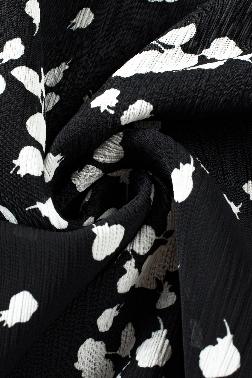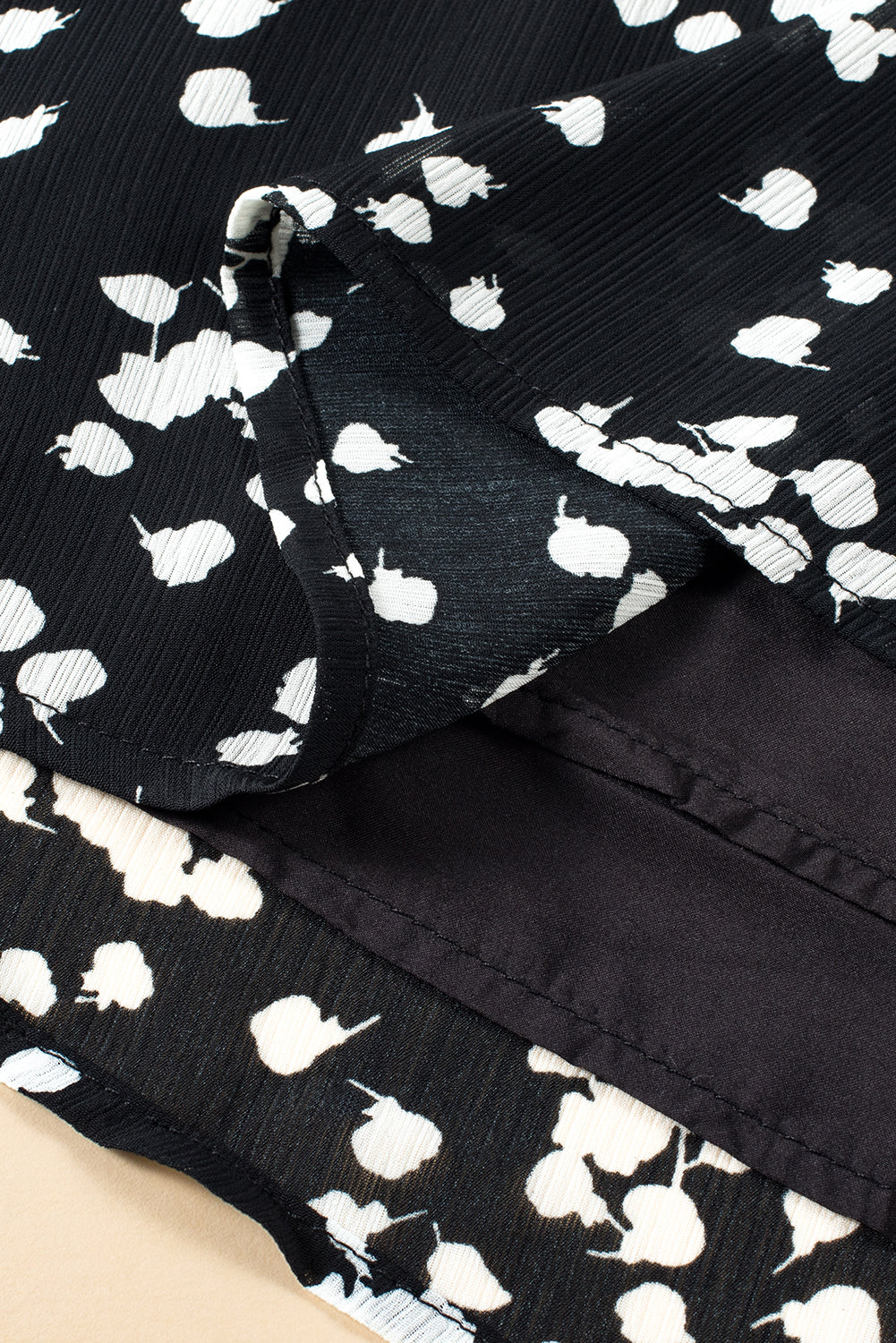 Black Plus Size Floral Print Ruched Split Neck Blouse