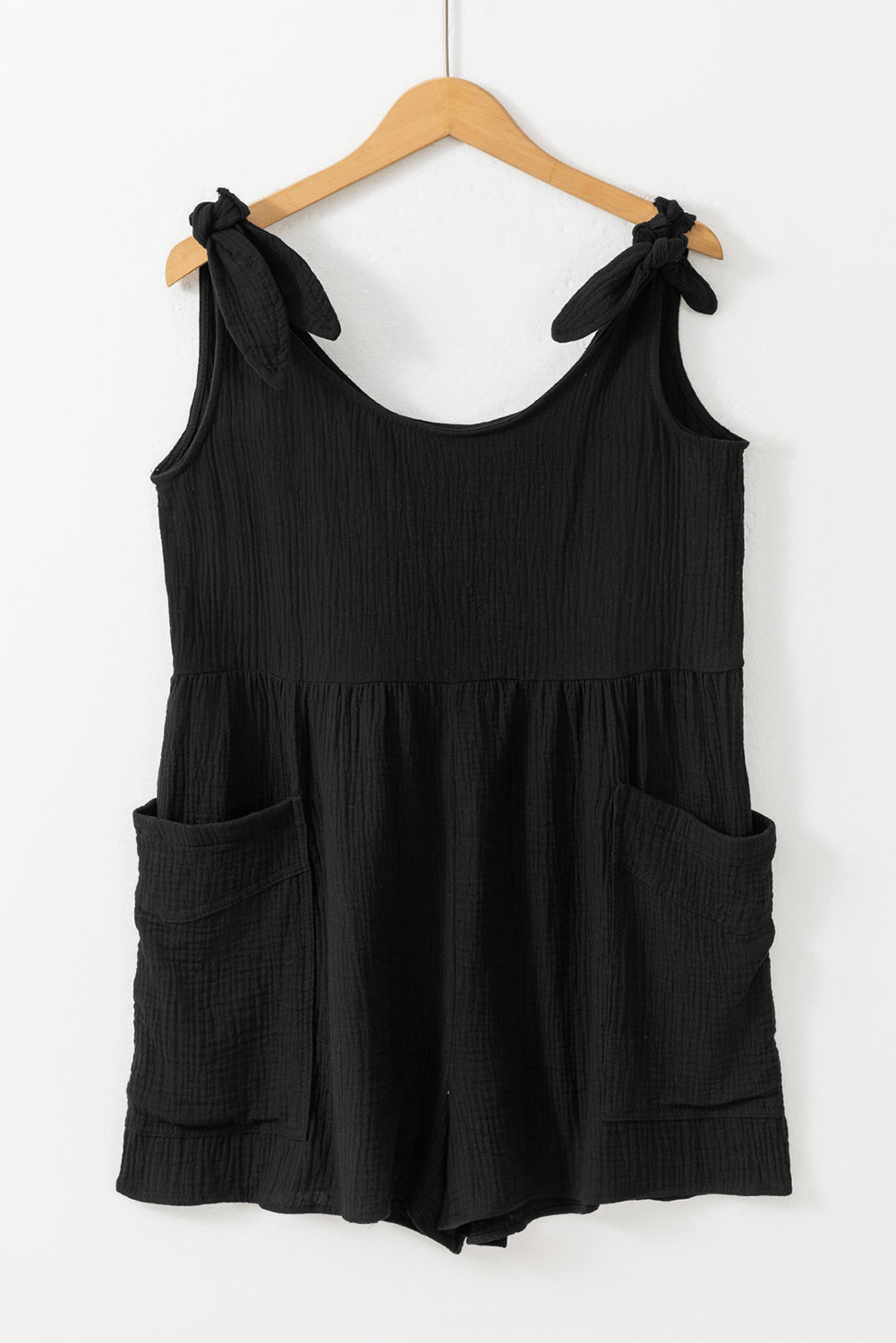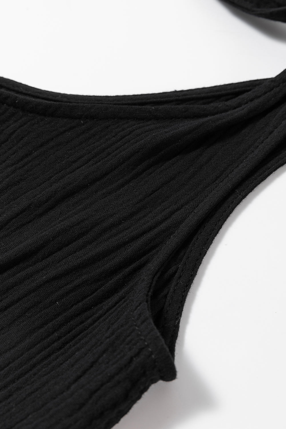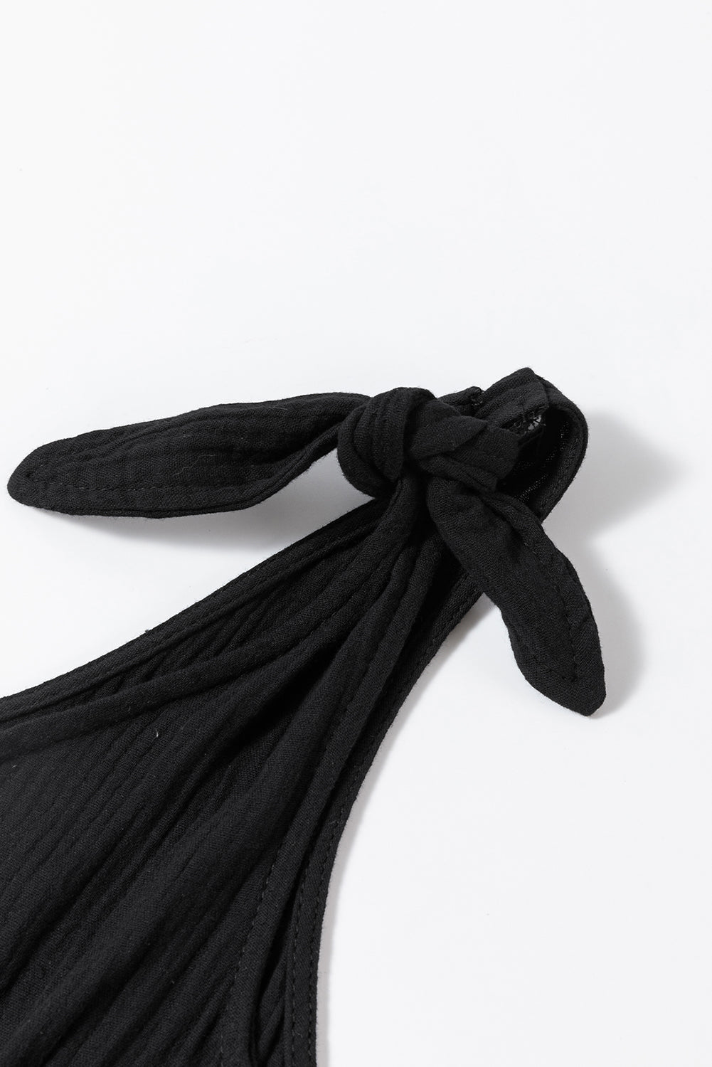 Black Textured Knotted Straps High Waist Wide Leg Romper