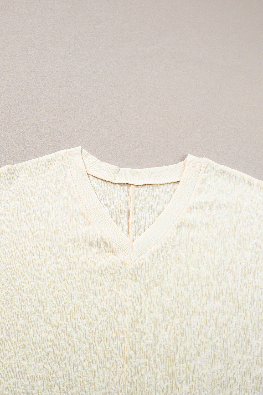 Bright Pink Crinkled V Neck Wide Sleeve T-shirt