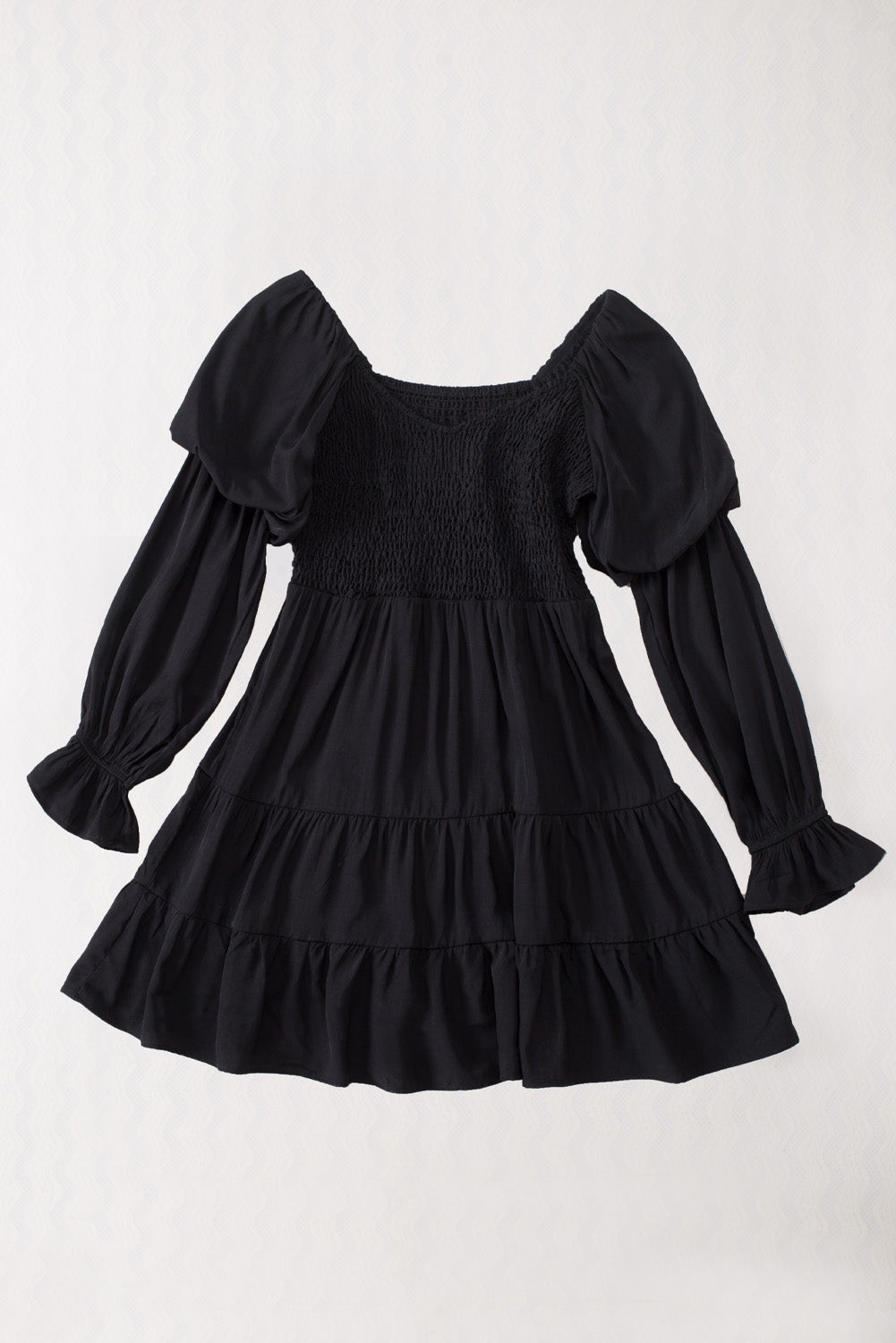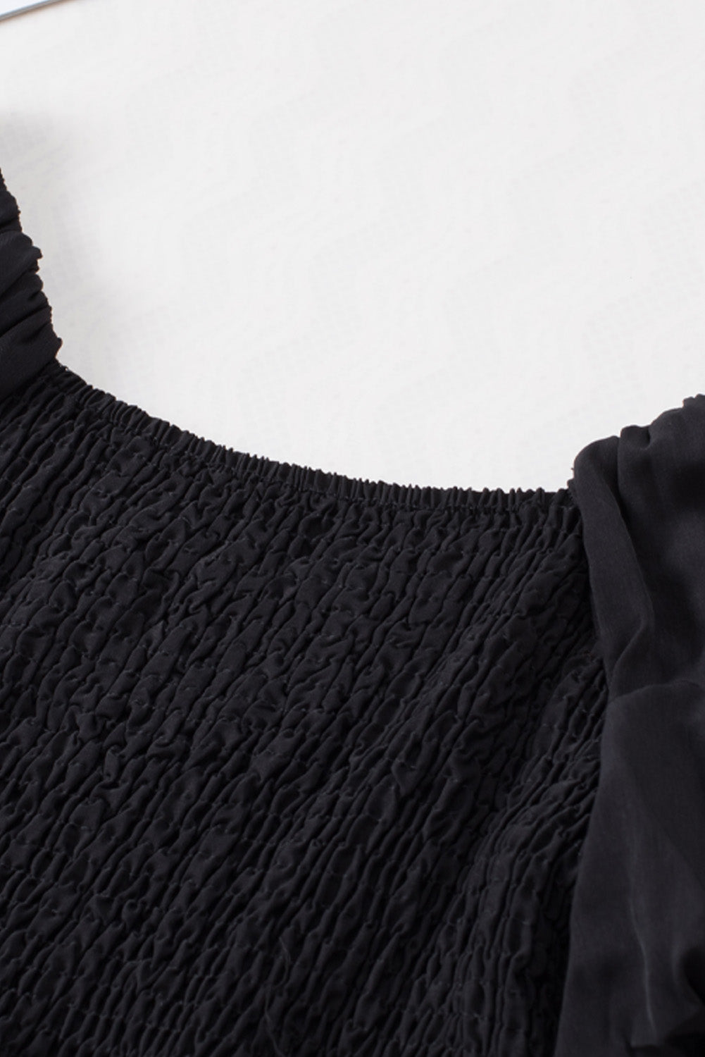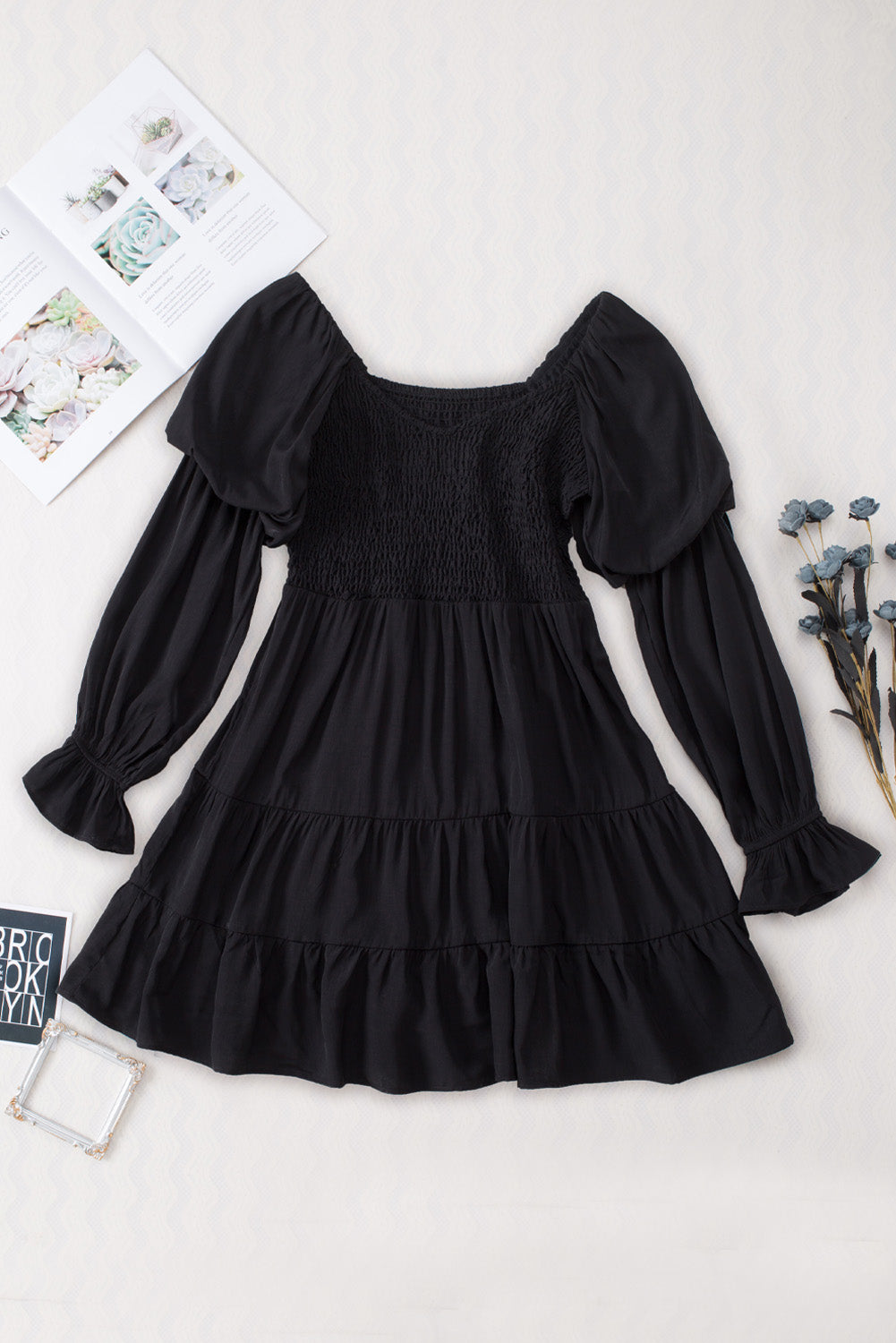 Brown Boho Solid Shirred Ruffle Mini Dress
