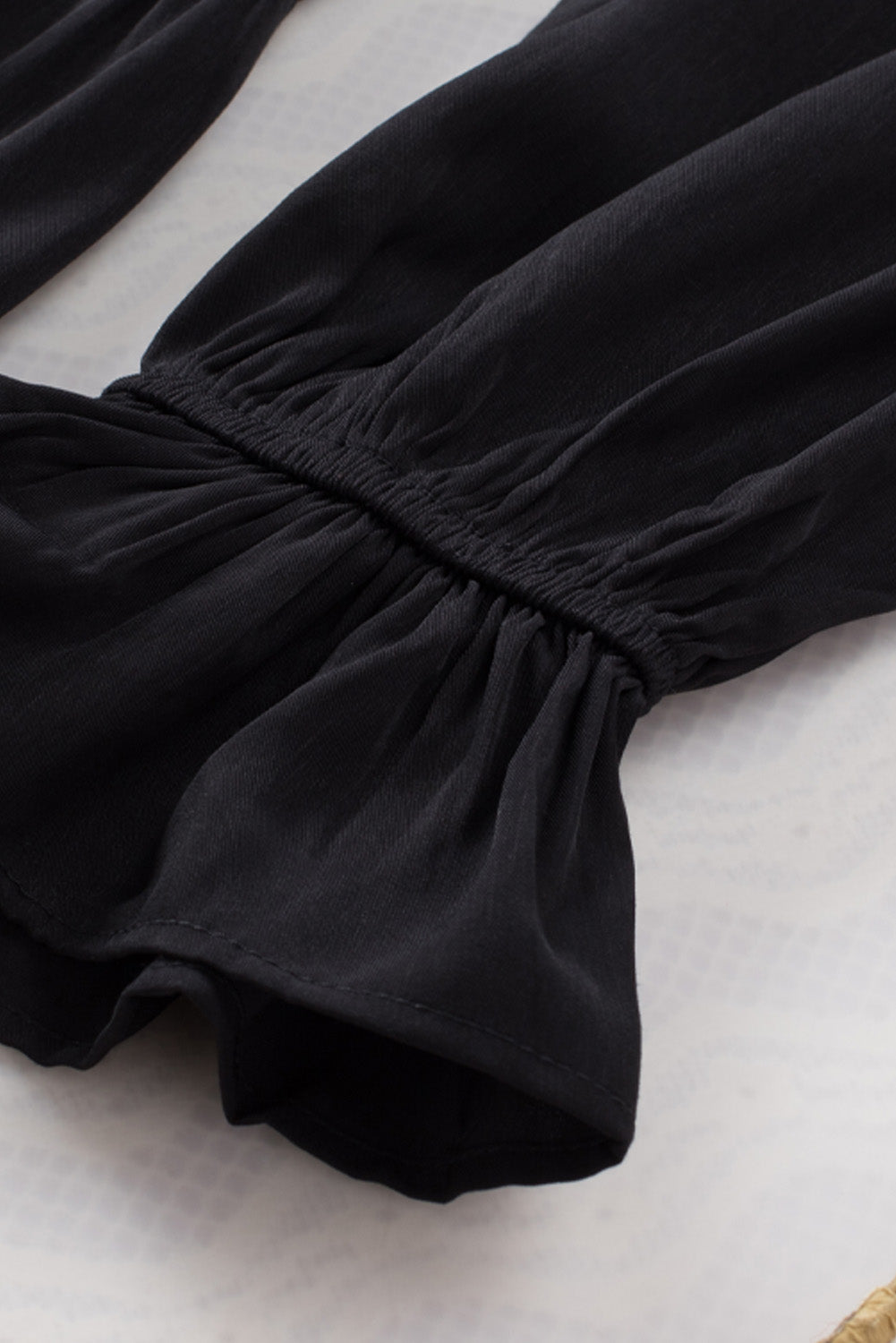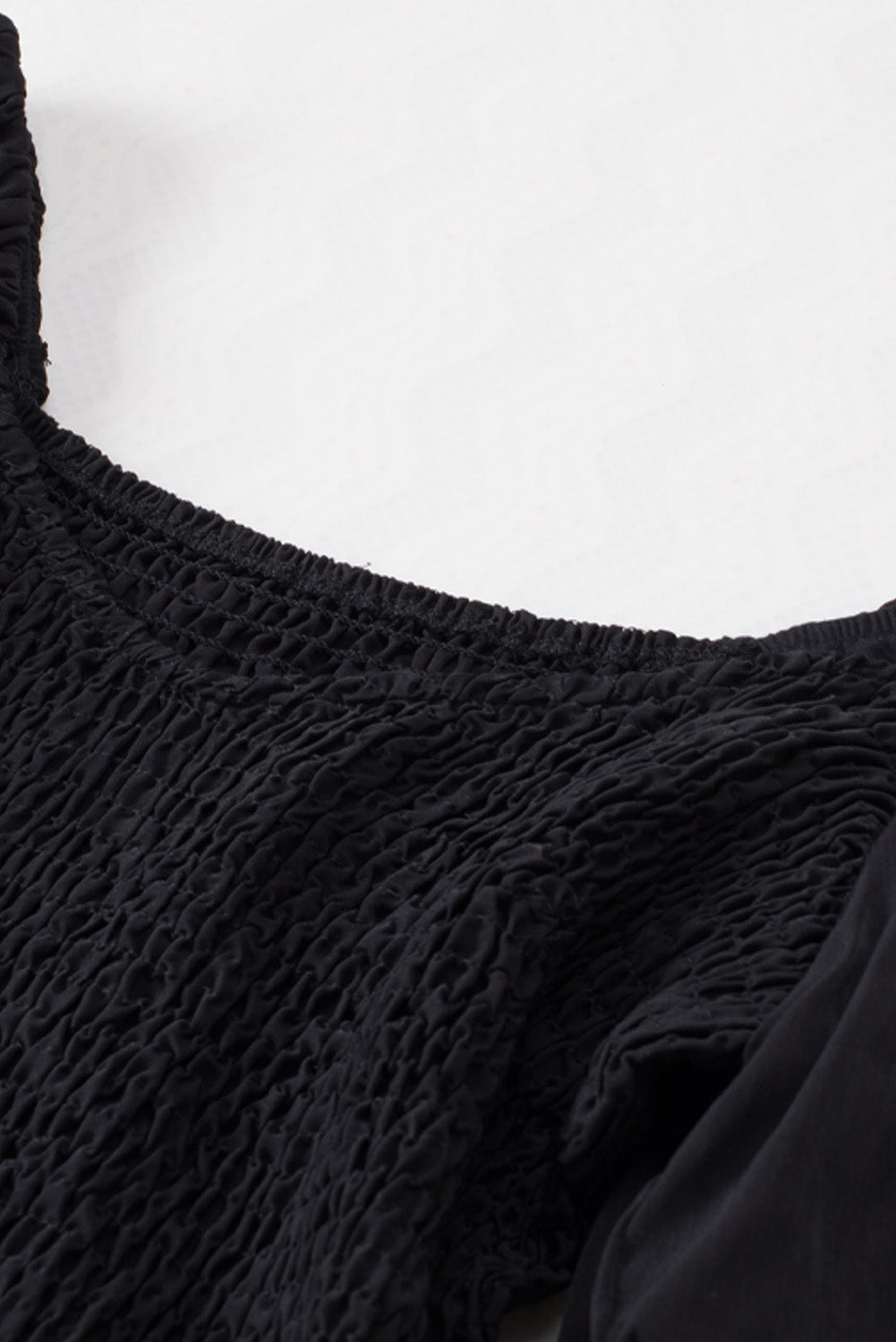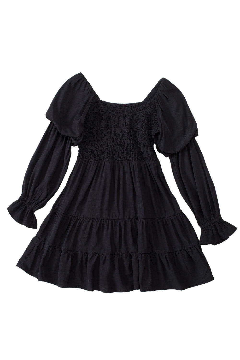 Brown Boho Solid Shirred Ruffle Mini Dress