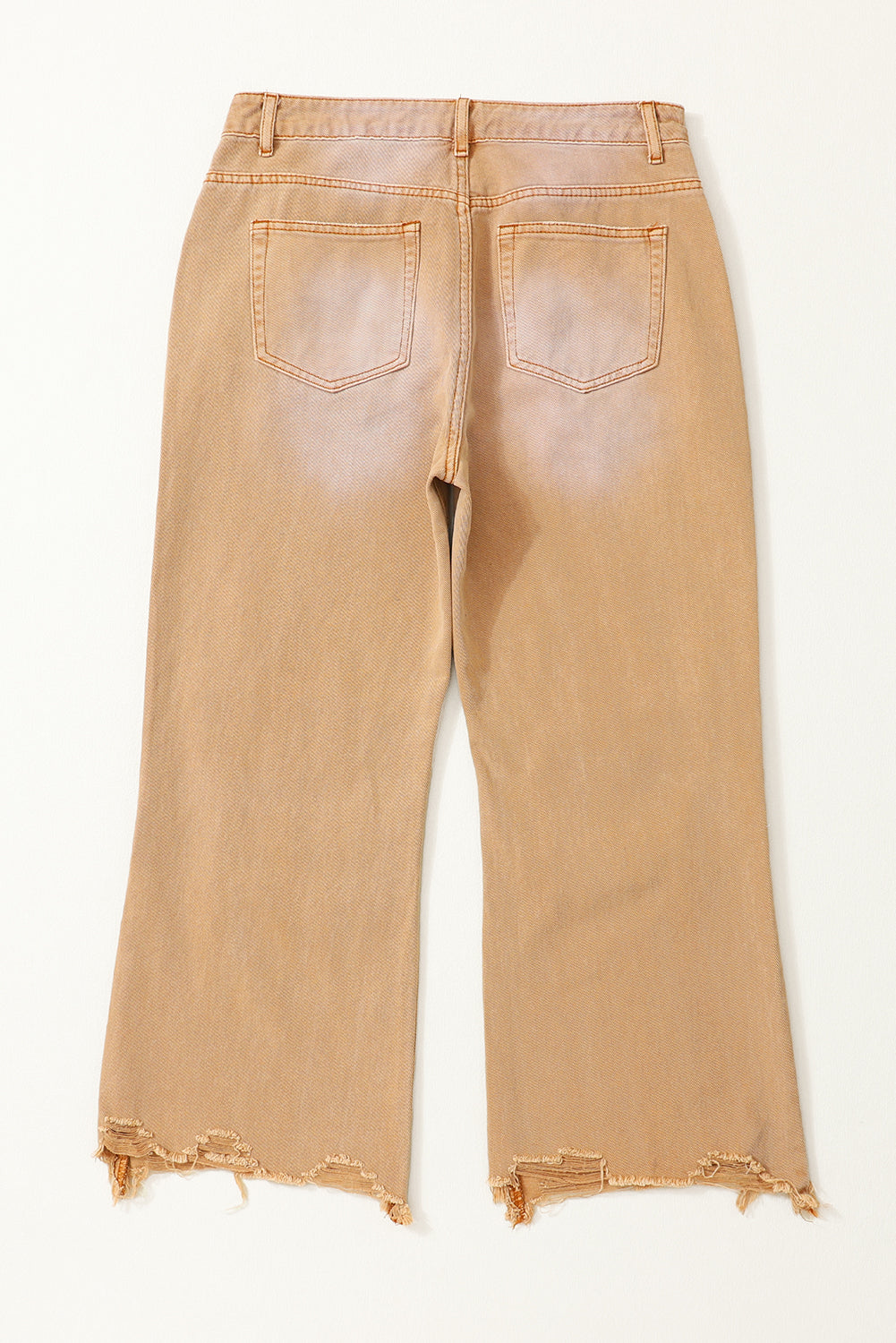 Brown Distressed Hollow-out High Waist Cropped Flare Jeans