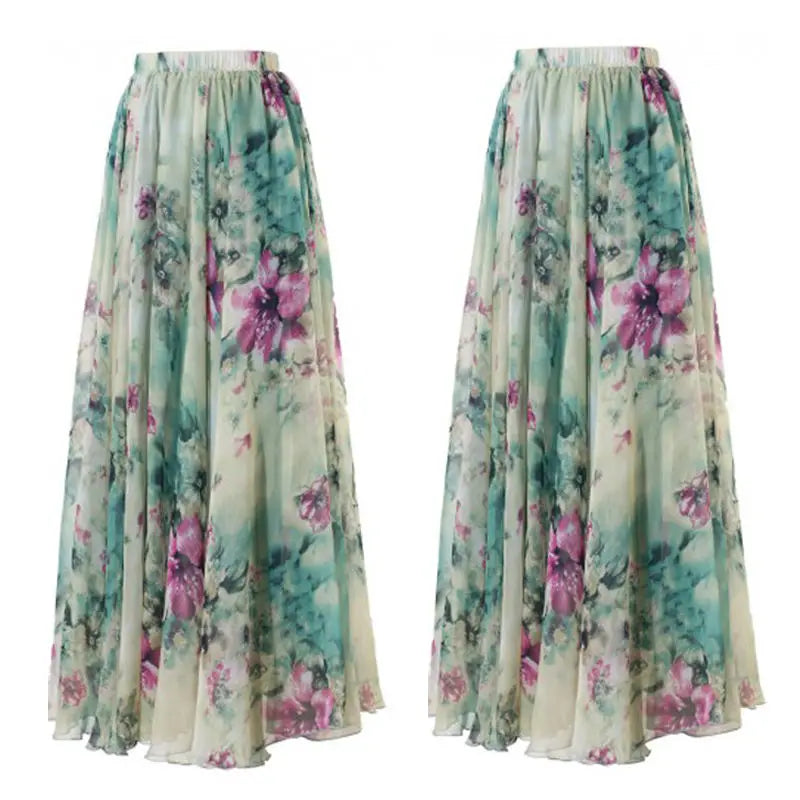 Achieve a stylish and graceful look with our Floral Boho Long Maxi Skirt. Its elegant flowy design adds a touch of sophistication to any outfit. Made with expert craftsmanship and high-quality materials, this skirt is the perfect addition to your wardrobe. Feel confident and chic in every step.