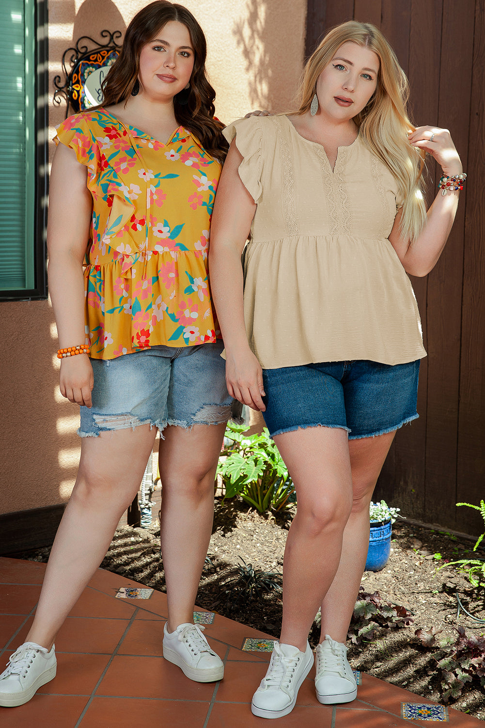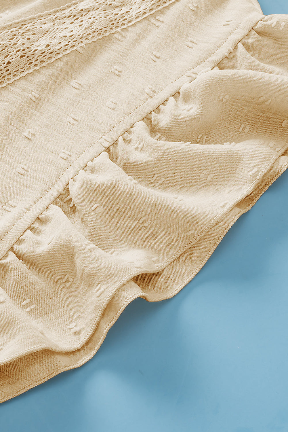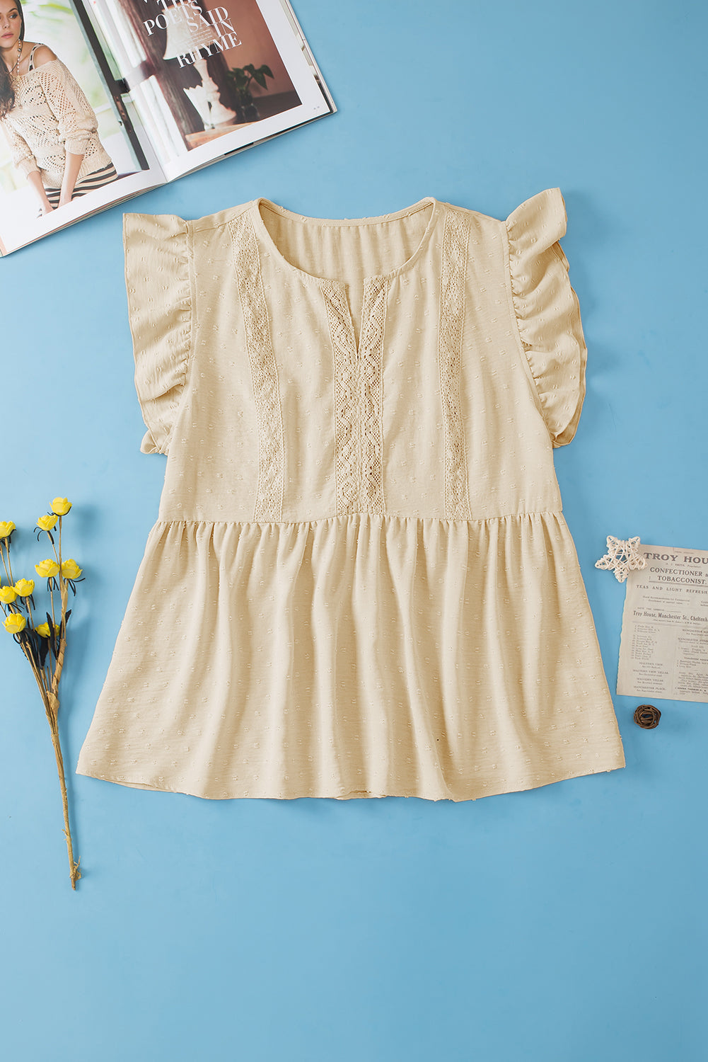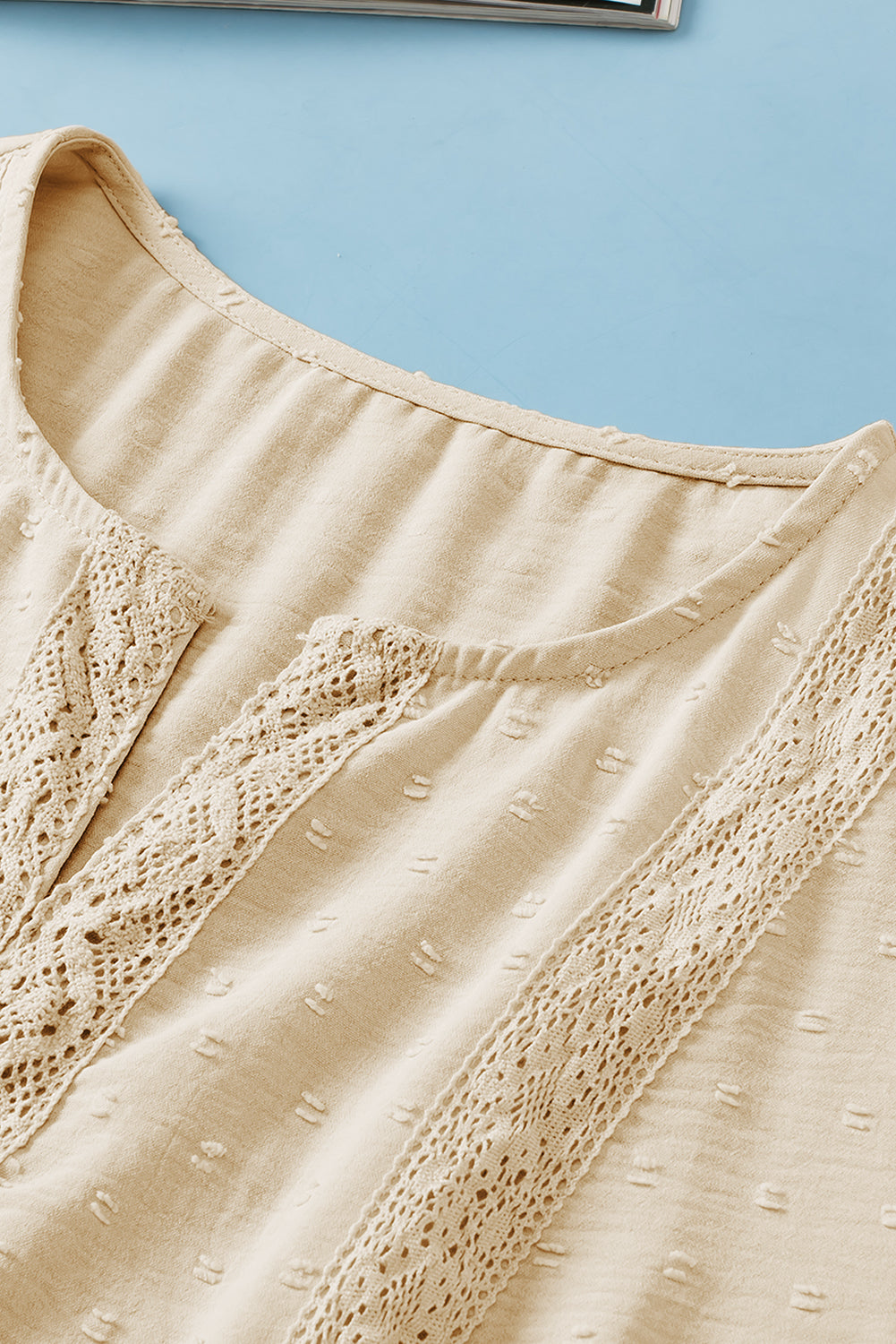 Golden Fleece Plus Size Swiss Dot Lace Trim Split Neck Babydoll Top