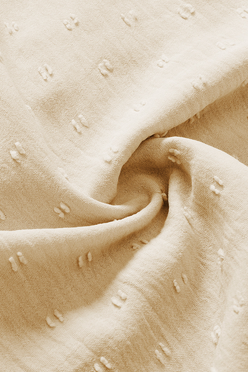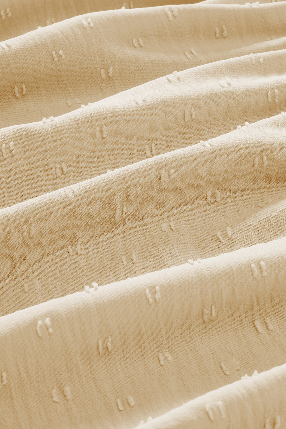 - Swiss dots and lace trim add an elegant touch to this flattering babydoll silhouette