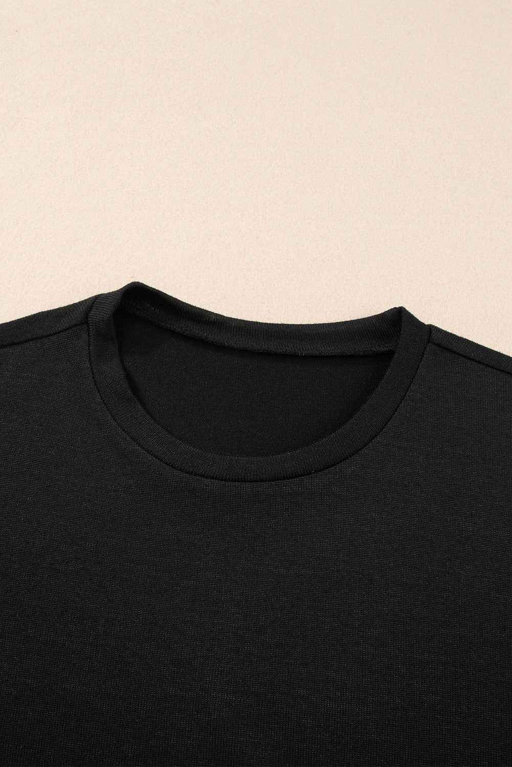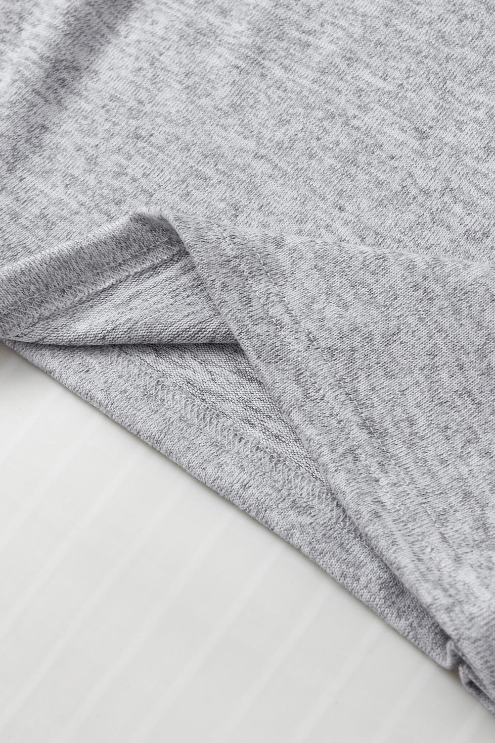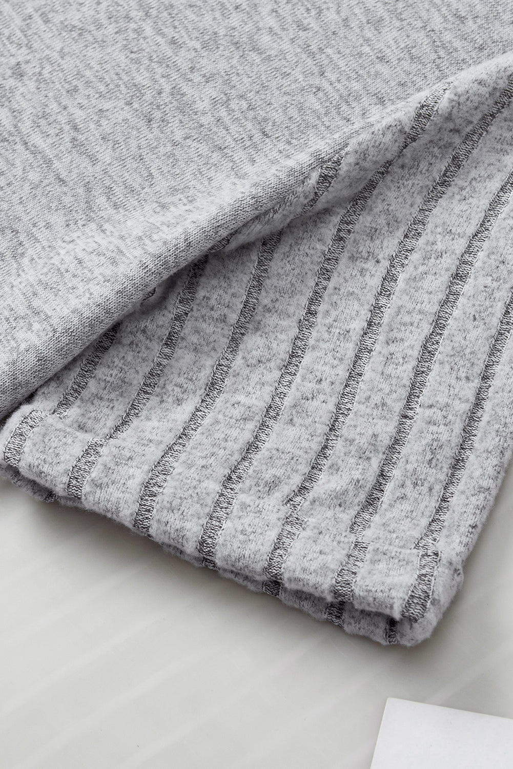 Gray Ribbed Splicing Sleeve Round Neck T-shirt