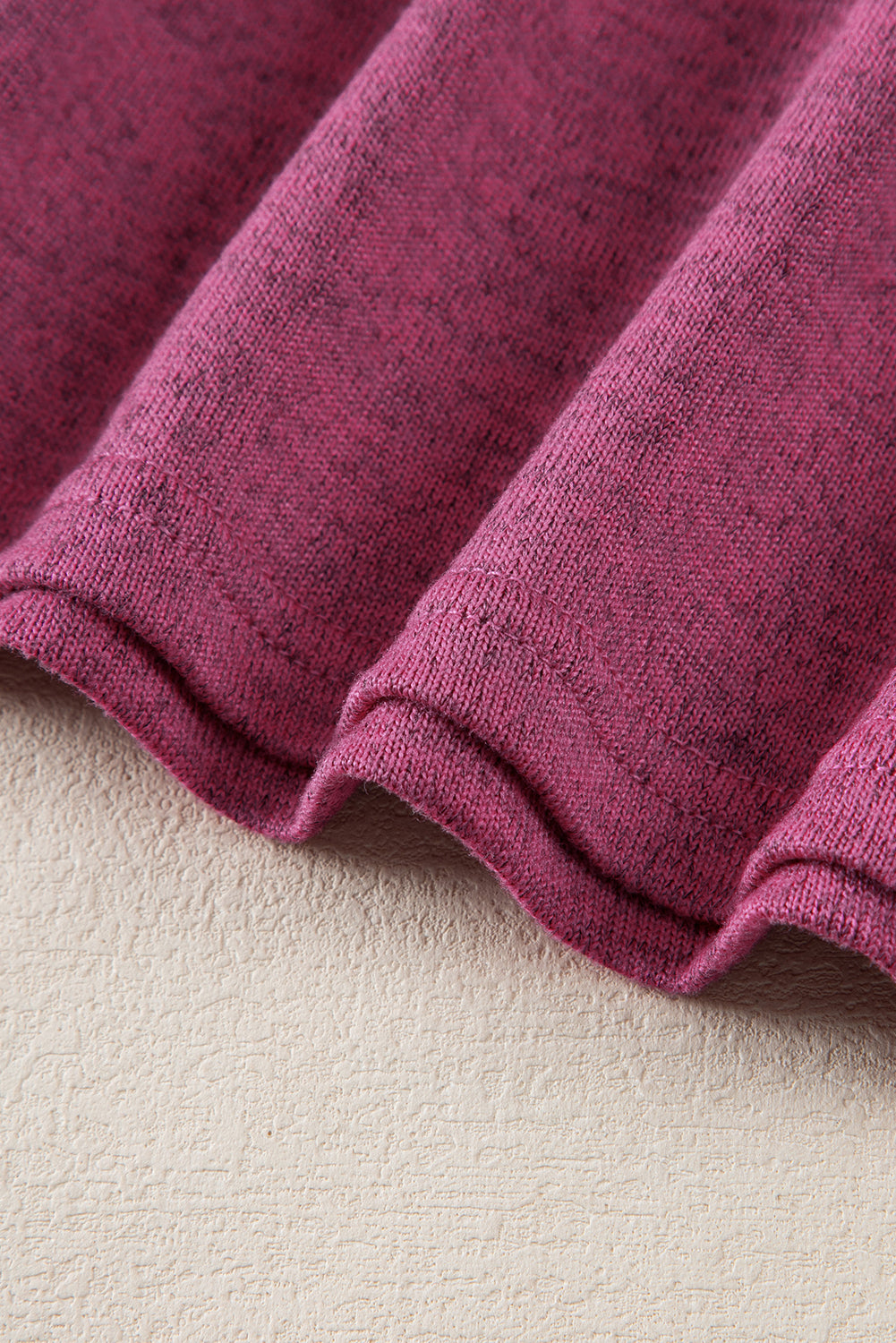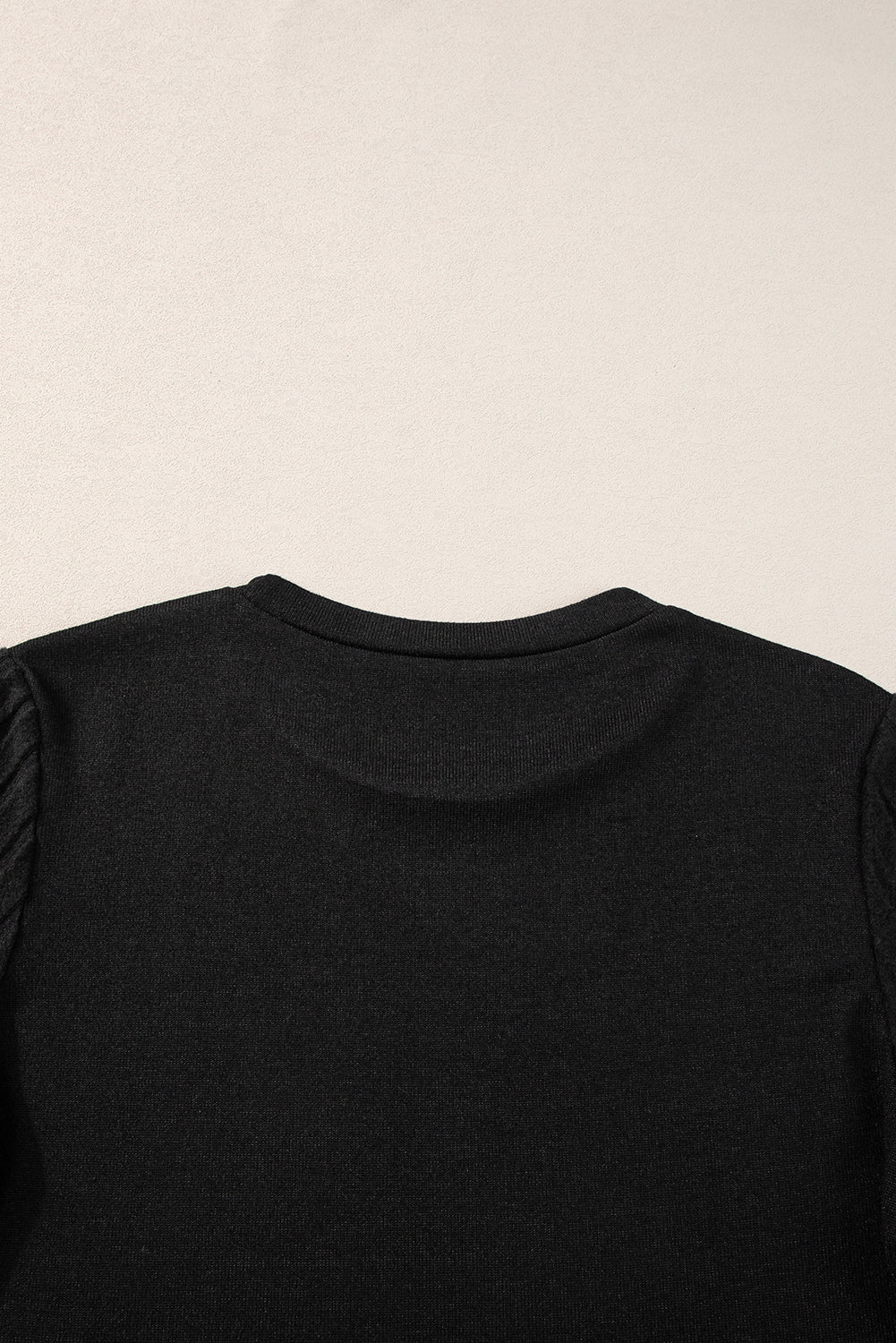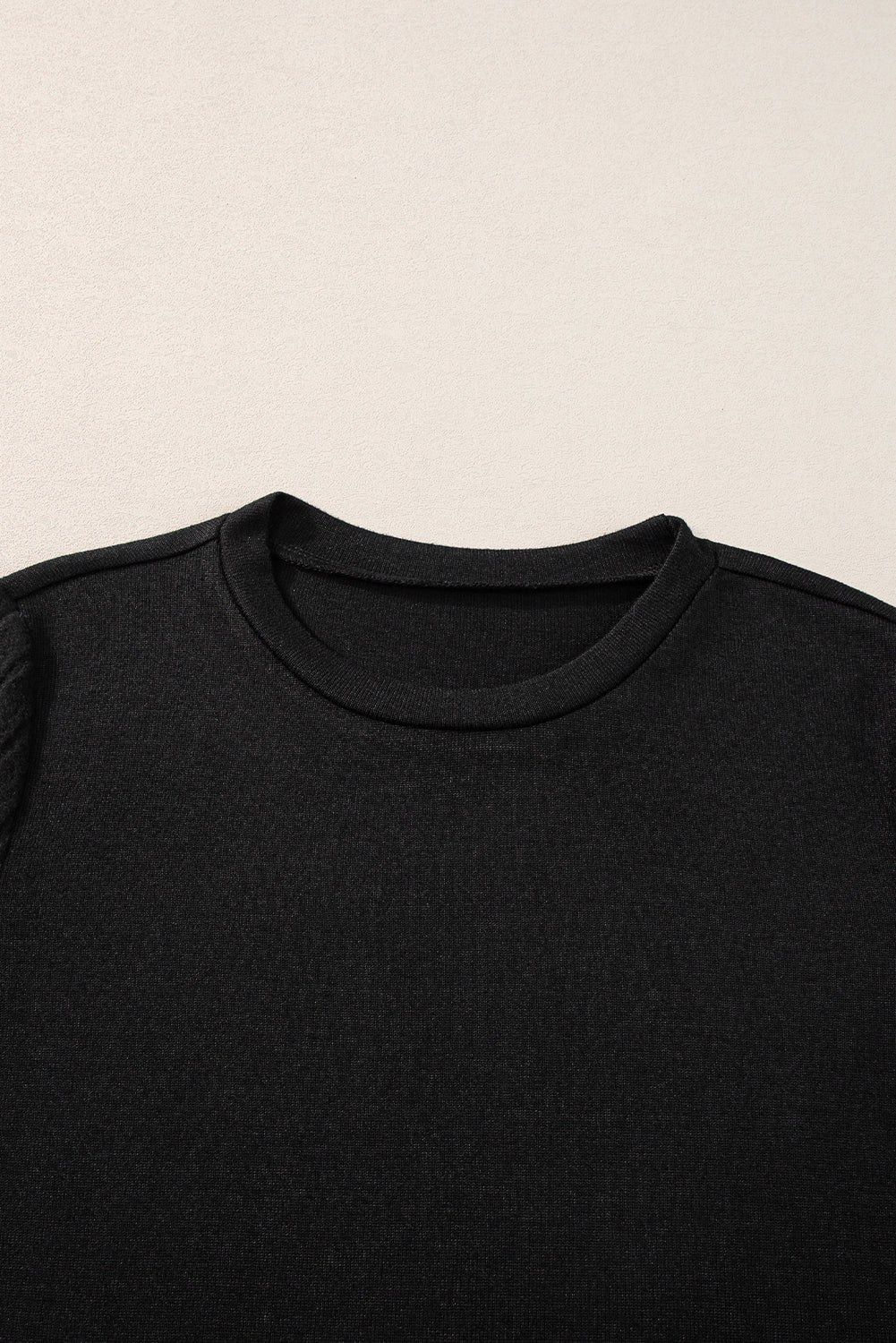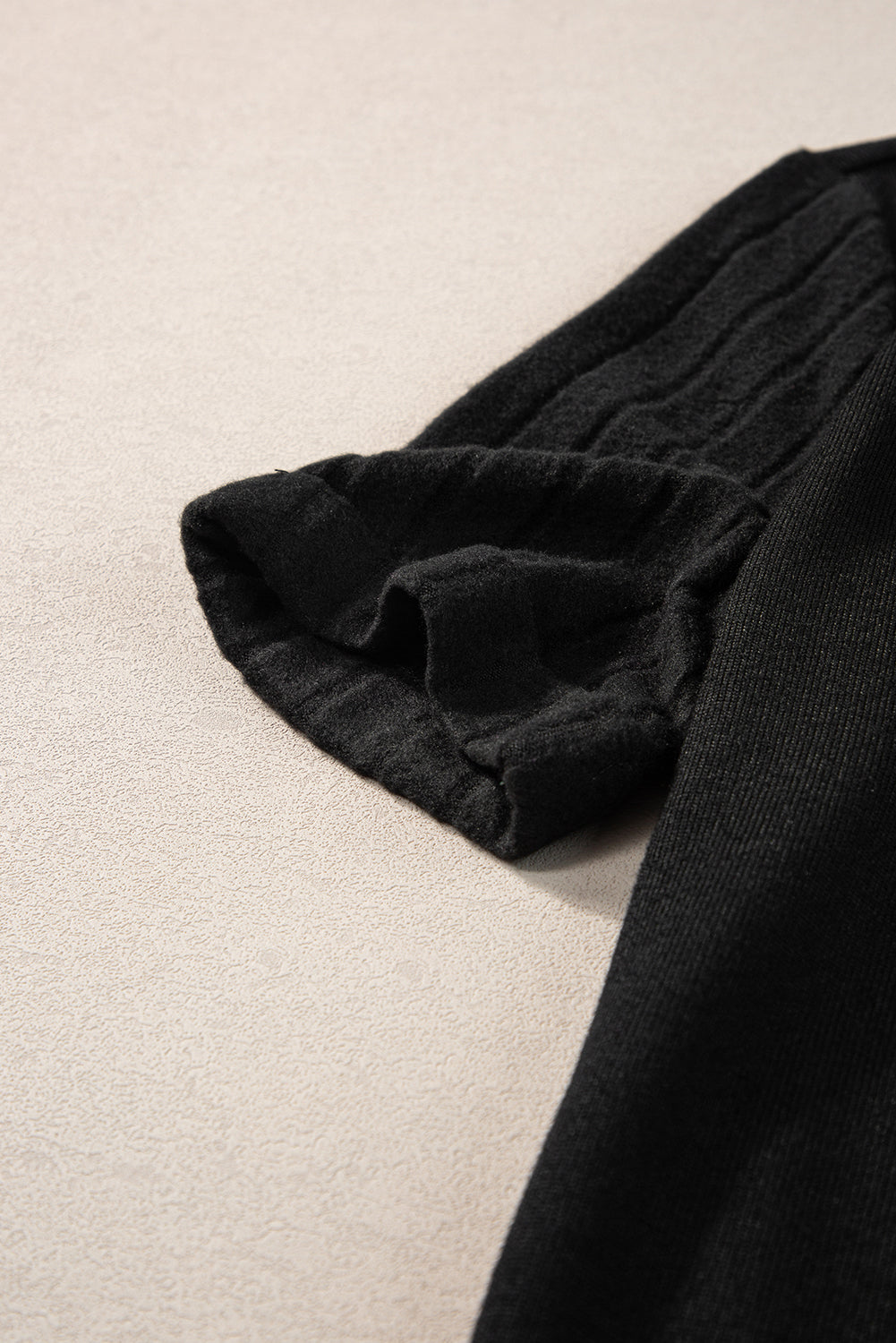 Gray Ribbed Splicing Sleeve Round Neck T-shirt