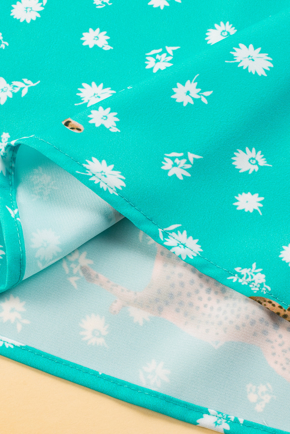 Green Cheetah Print V Neck Short Sleeve Plus Top