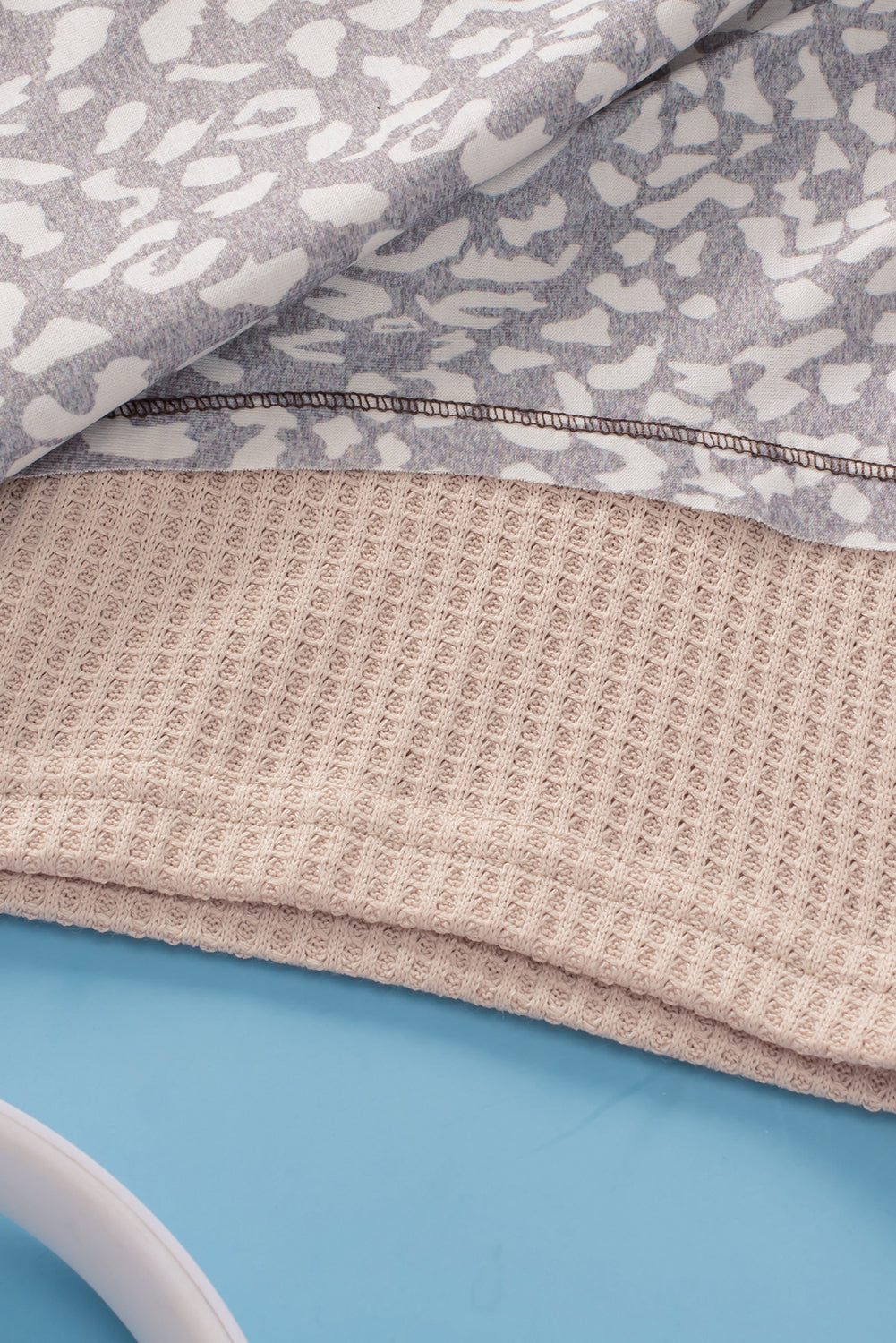 Khaki Plus Size Leopard Print Colorblock V Neck T Shirt