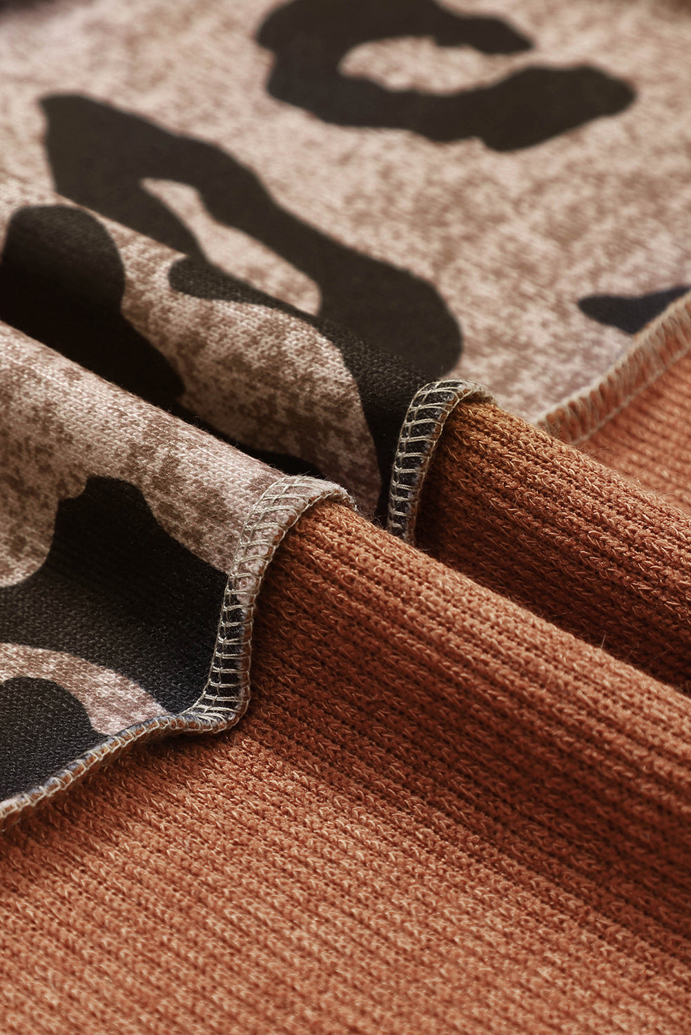 Leopard Colorblock Patchwork V-Neck Loose Sleeve Knit Top