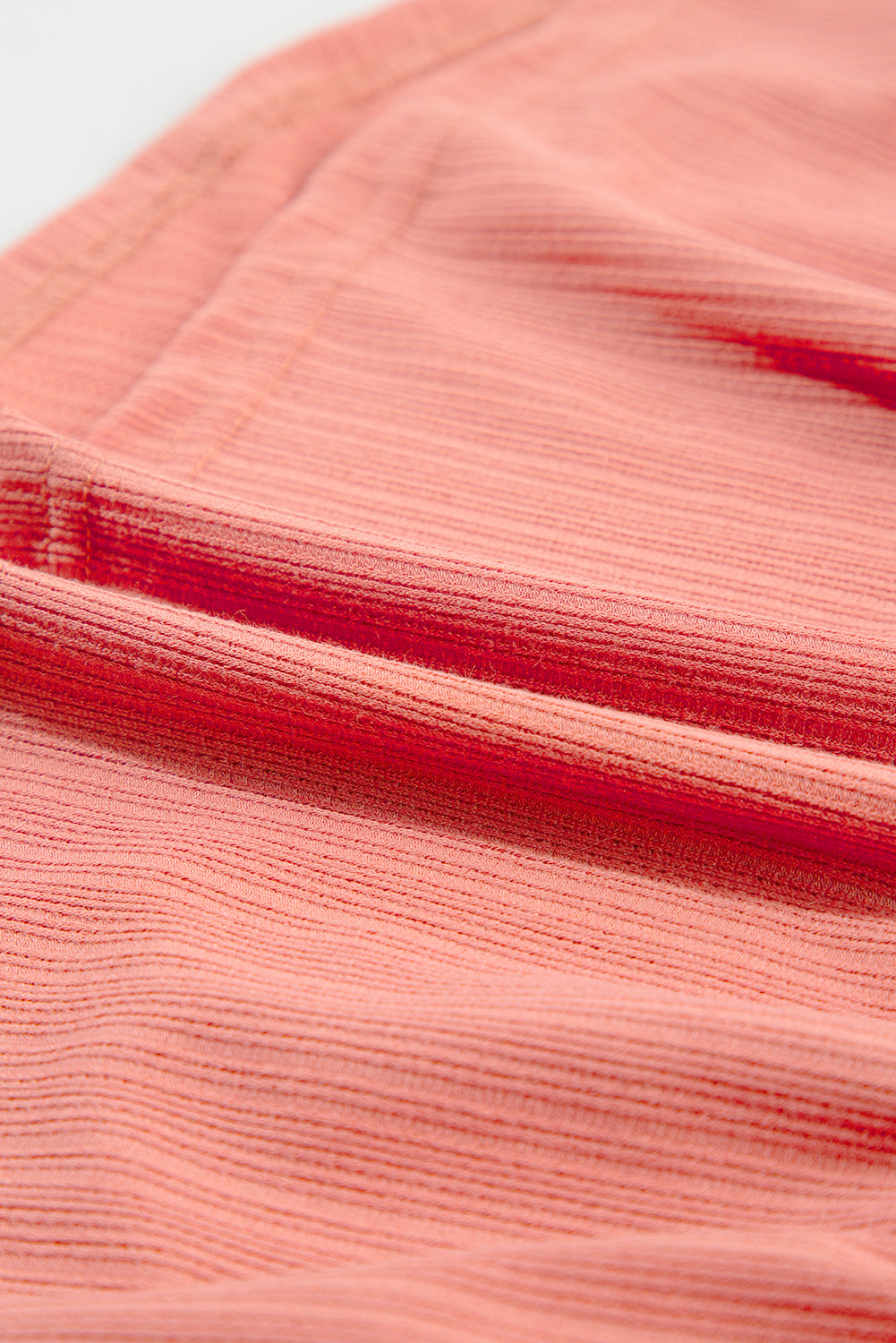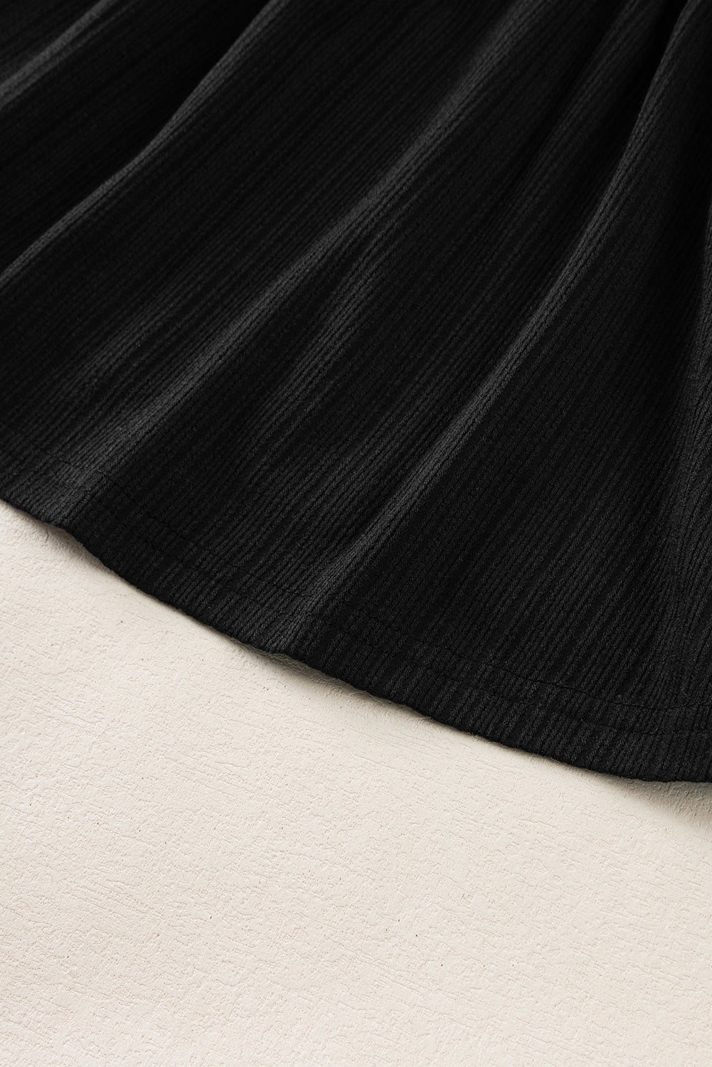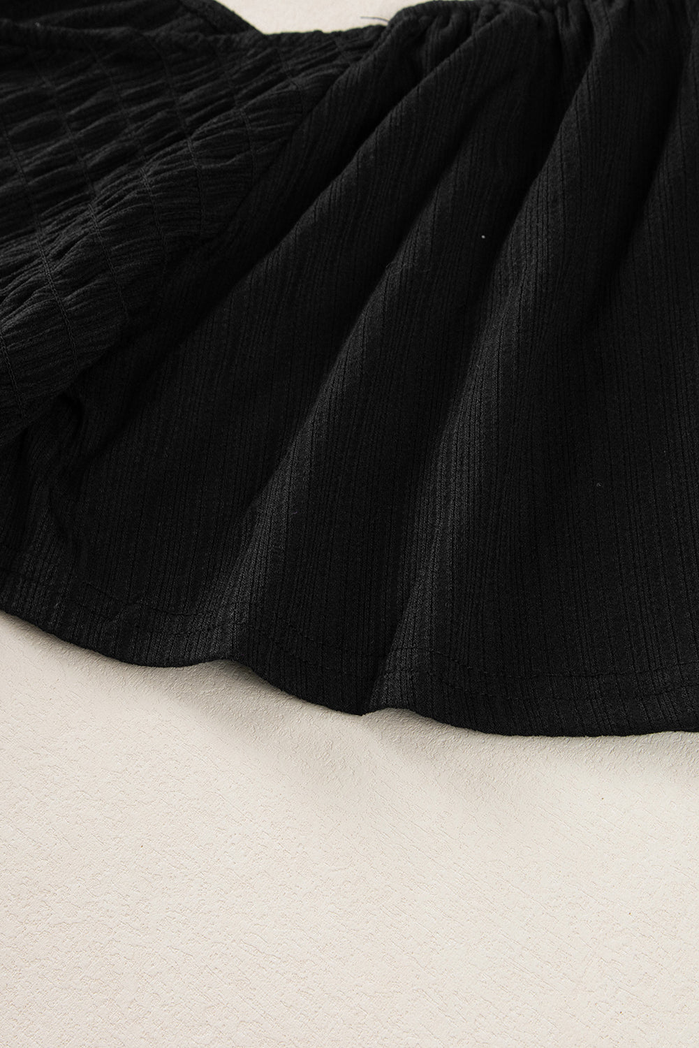 Oatmeal Shirred V Neck Short Flutter Sleeve Textured Blouse