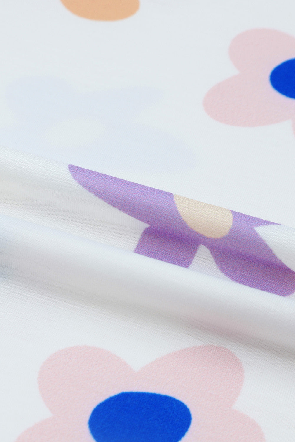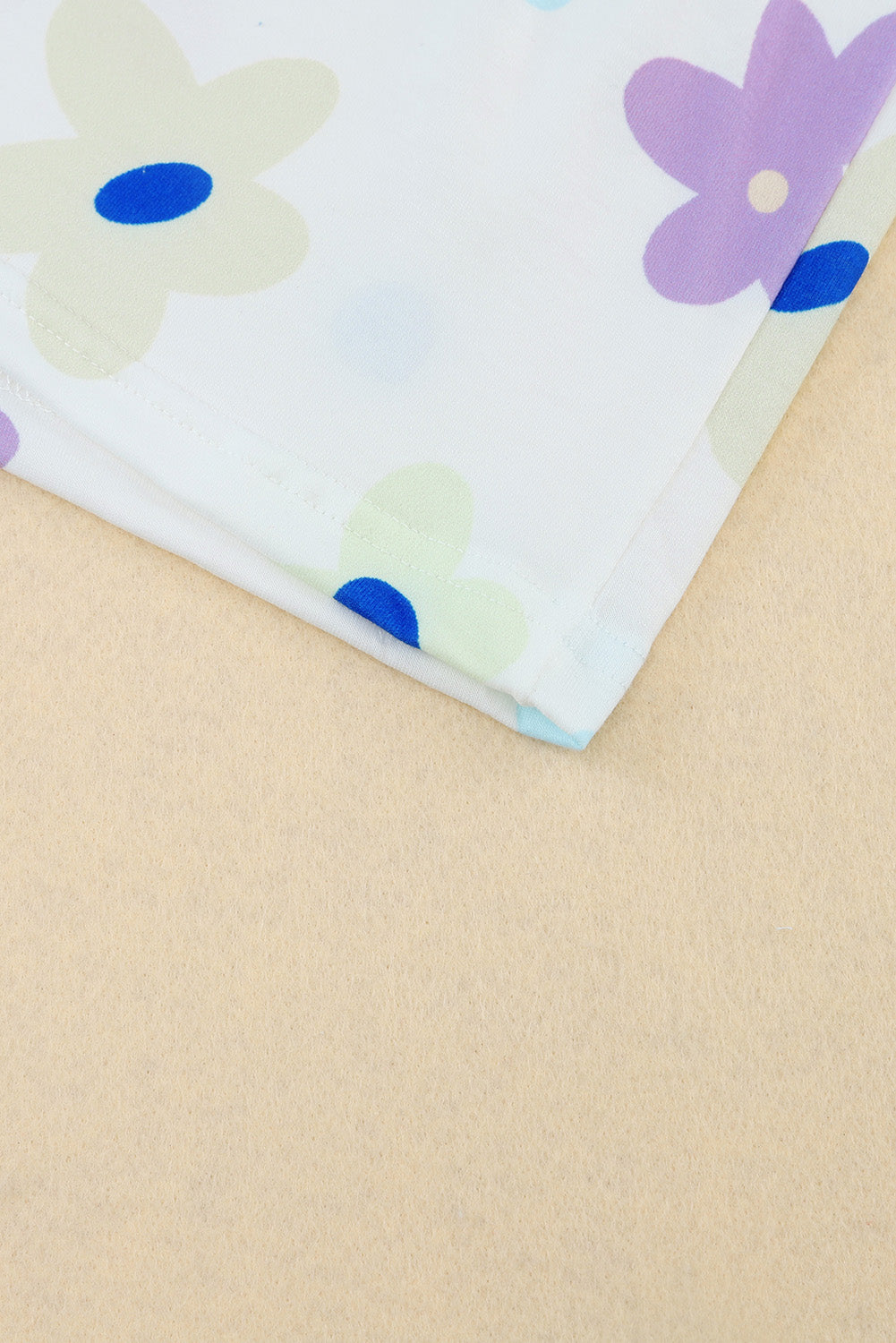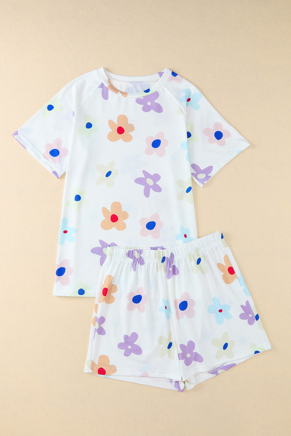 Pink Flower Print Short Sleeve High Waist Two Piece Shorts Set