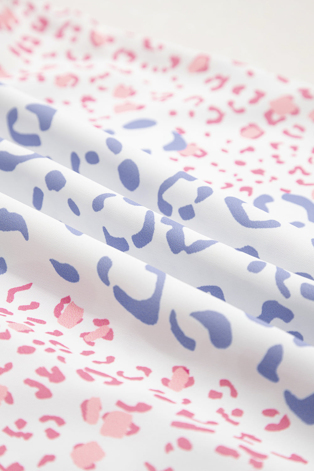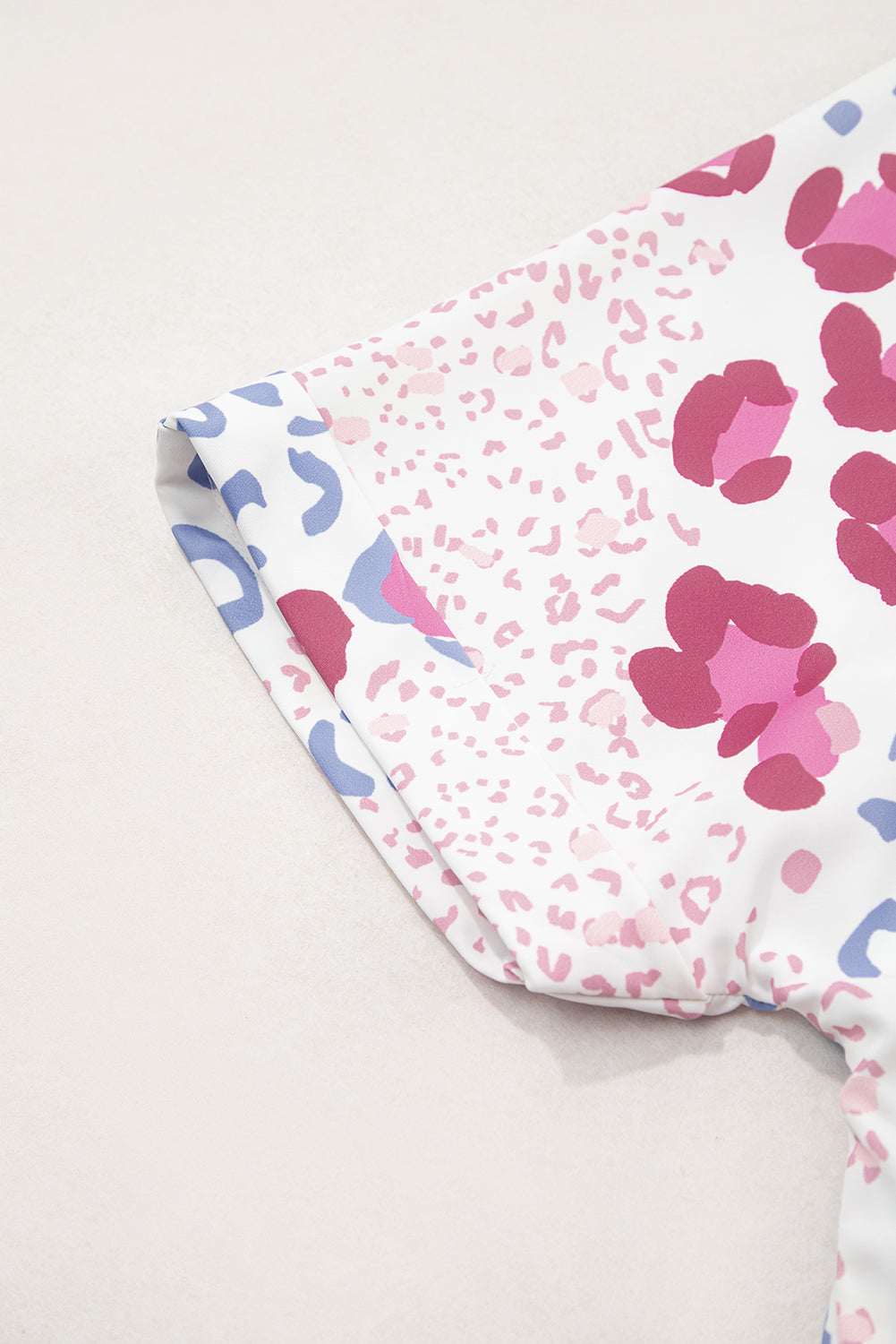 Pink Mixed Leopard Print V Neck Short Sleeve Blouse