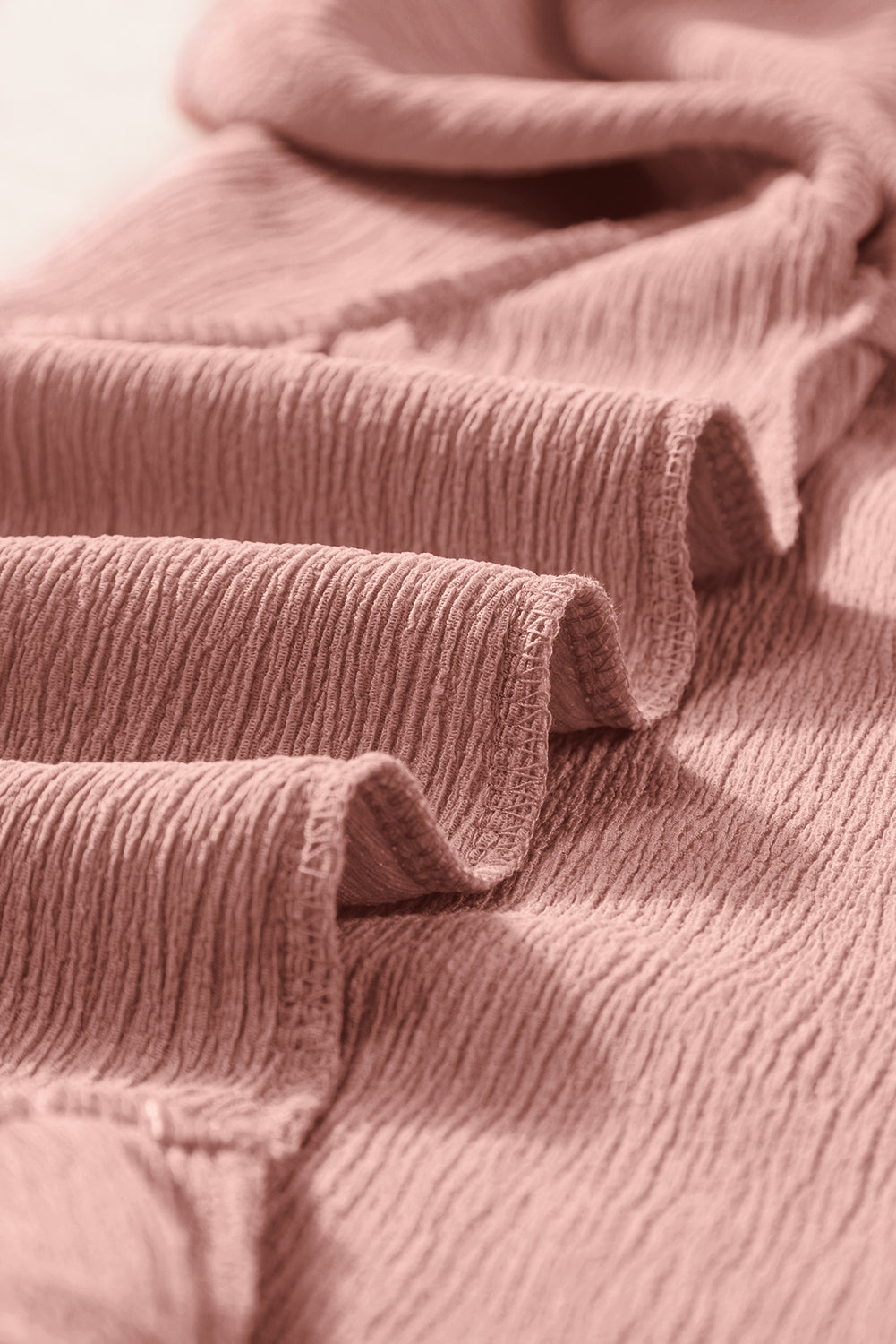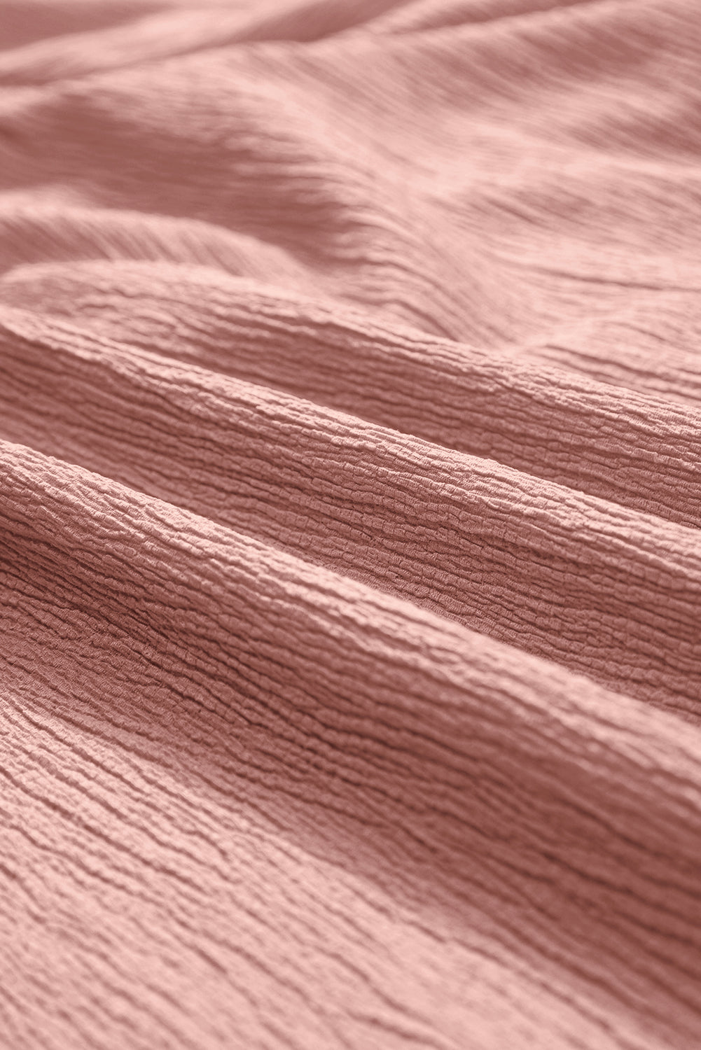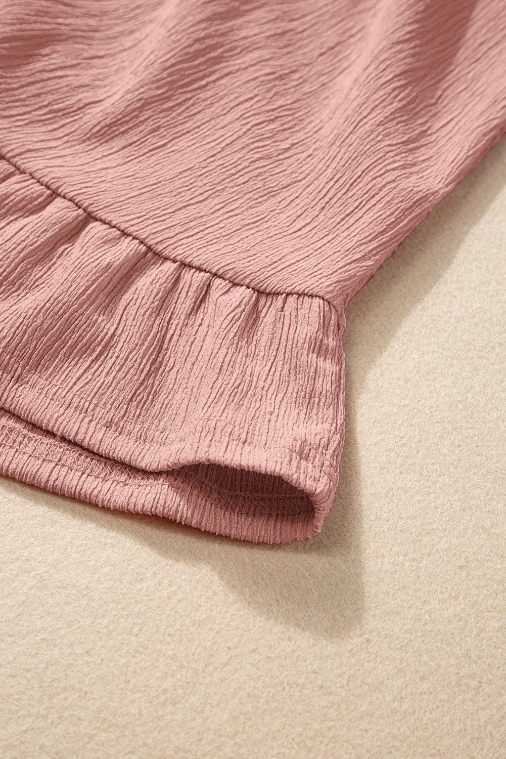 - Round neck, short sleeve, exposed seam with ruffled hemline