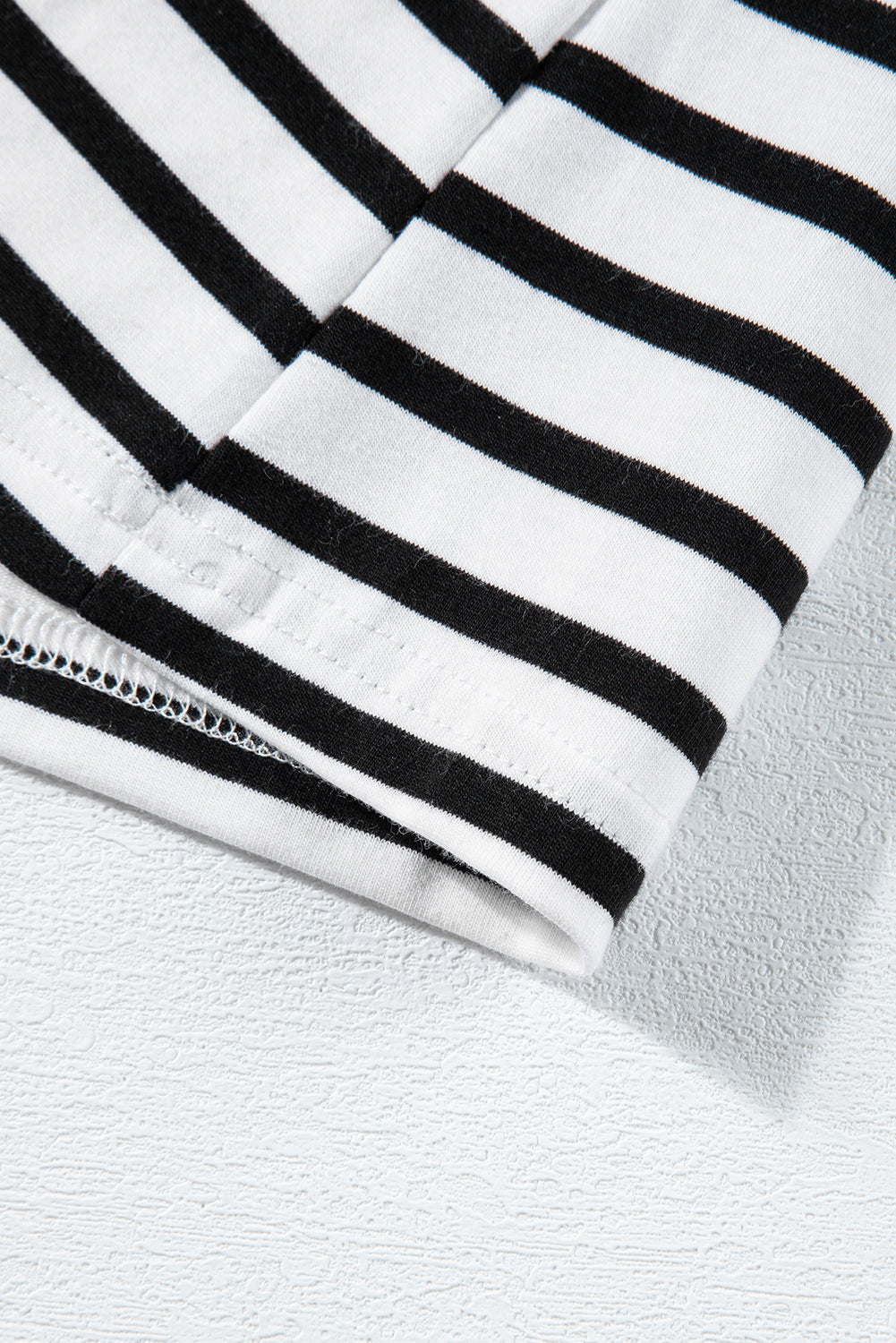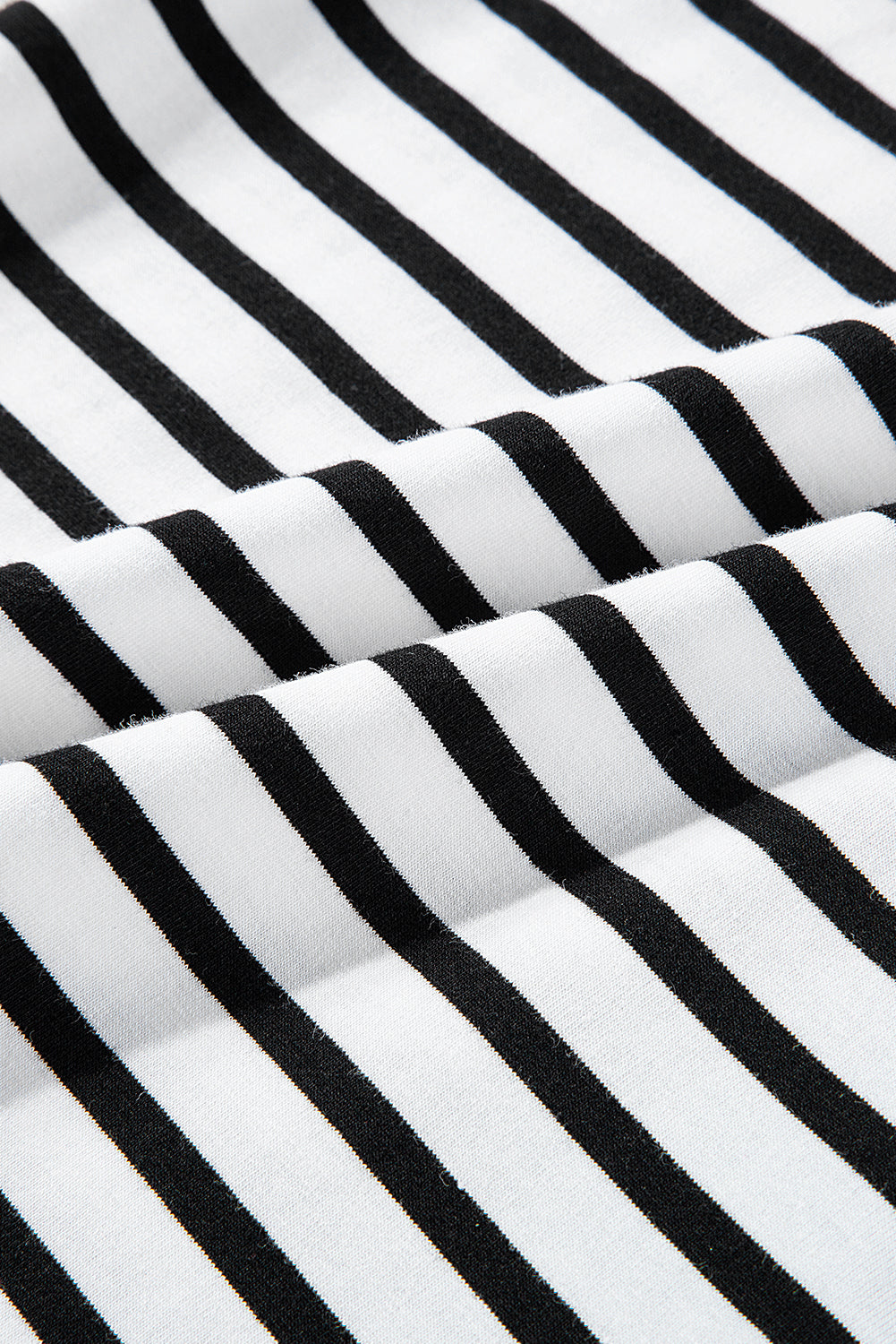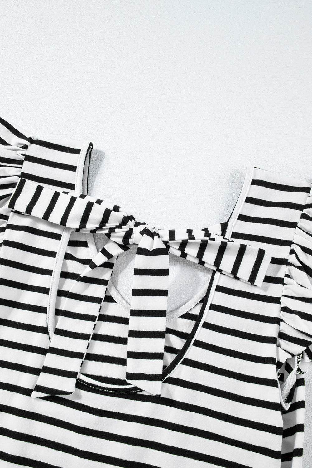 Pink Stripe Butterfly Sleeve V Neck Hollowed Knot Back T Shirt