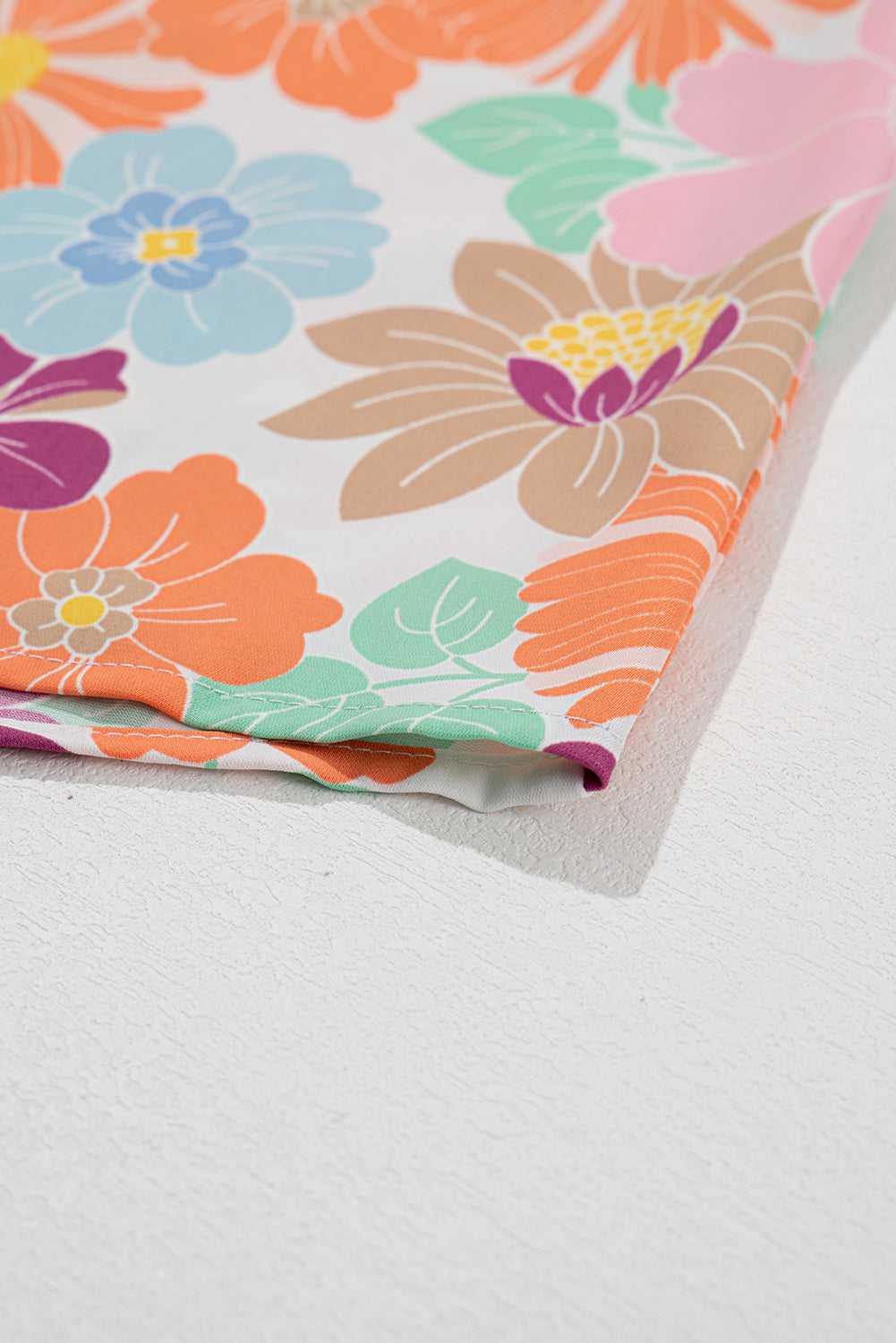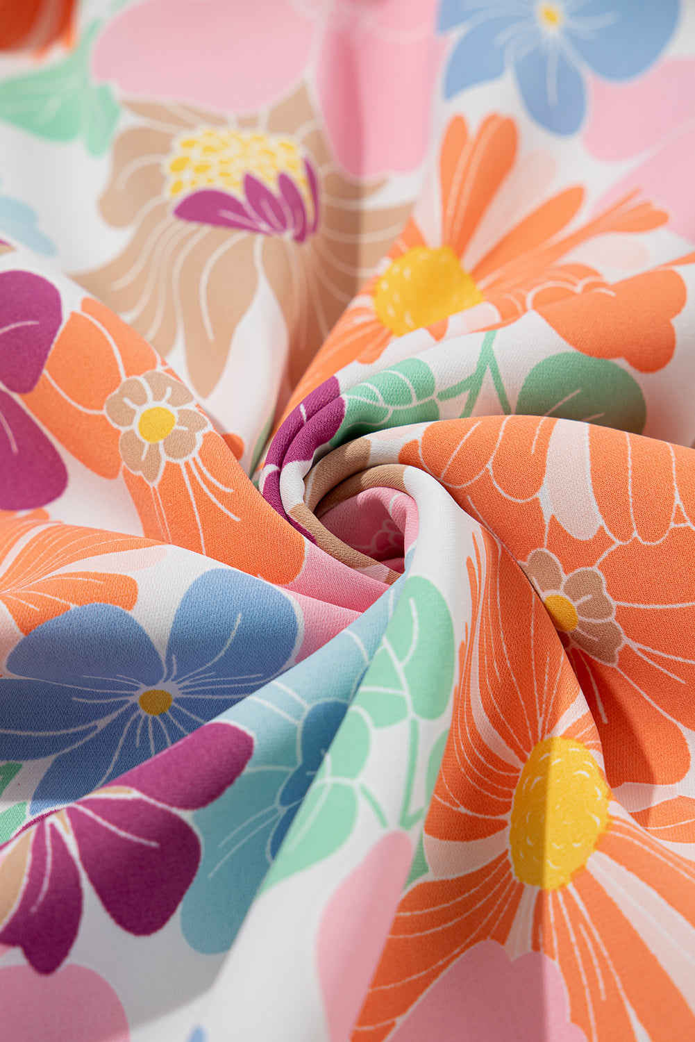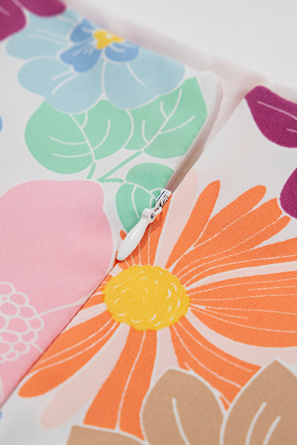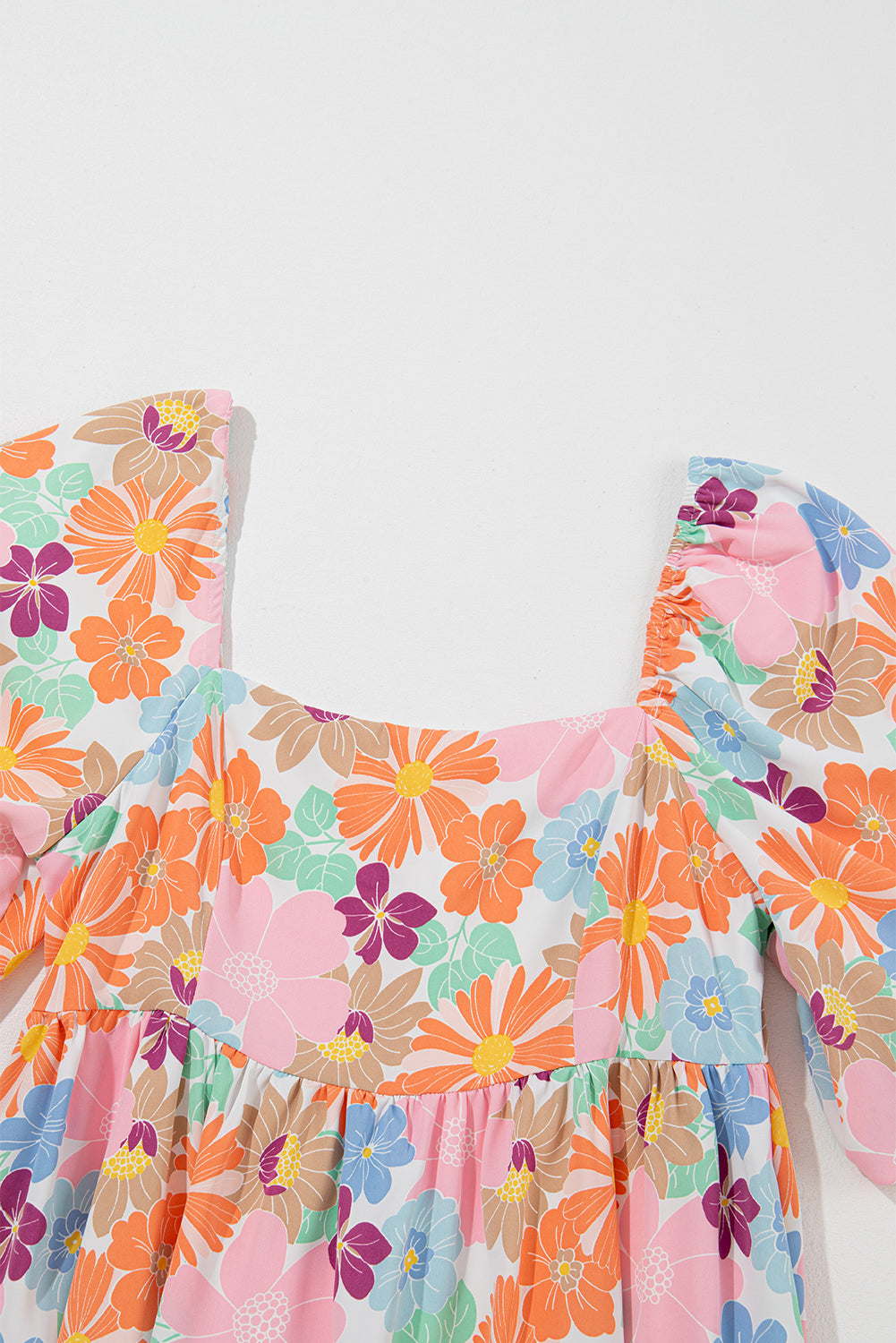 Pink Summer Floral Square Neck Puff Sleeve Babydoll Dress