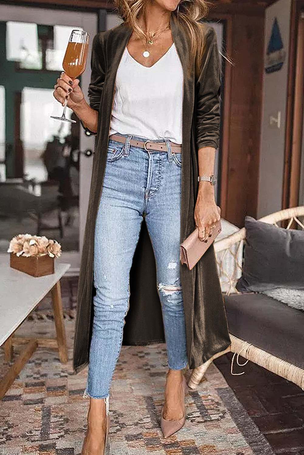 - Long cardigan with open front and long sleeve for daily outfit