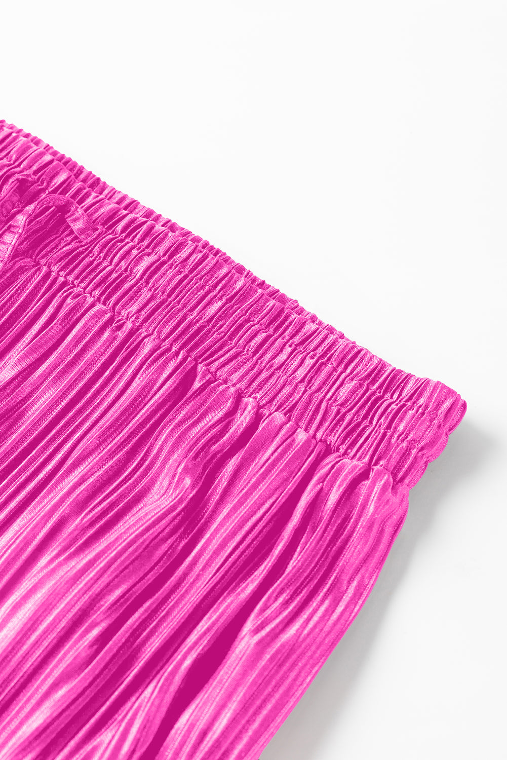 Rose Pleated Long Sleeve Shirt and Wide-Leg Pants Set