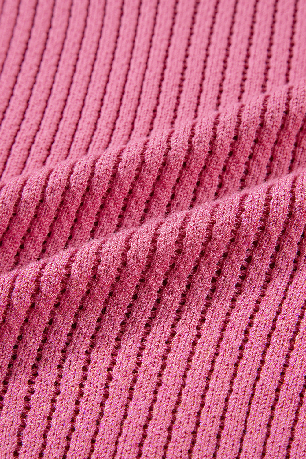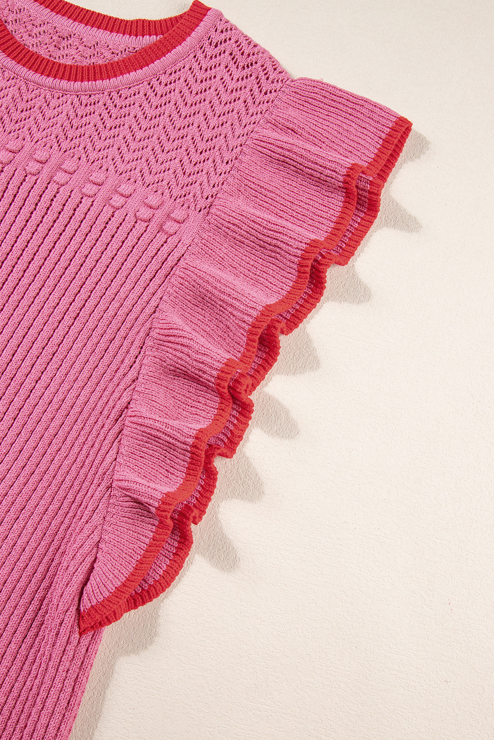 Rose Red Ruffled Contrast Trim Plus Size Short Sleeve Sweater