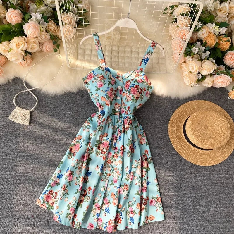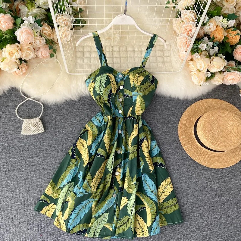 Material : CottonDecoration : ZippersWaist : NaturalSilhouette : Fitted and flaredSleeve Length (cm) : SleevelessPattern Type : PointSleeve Style : Spaghetti StripsModel Number : 1-1Season : SummerStyle : CasualNeckline : HalterDress Length : At knee height